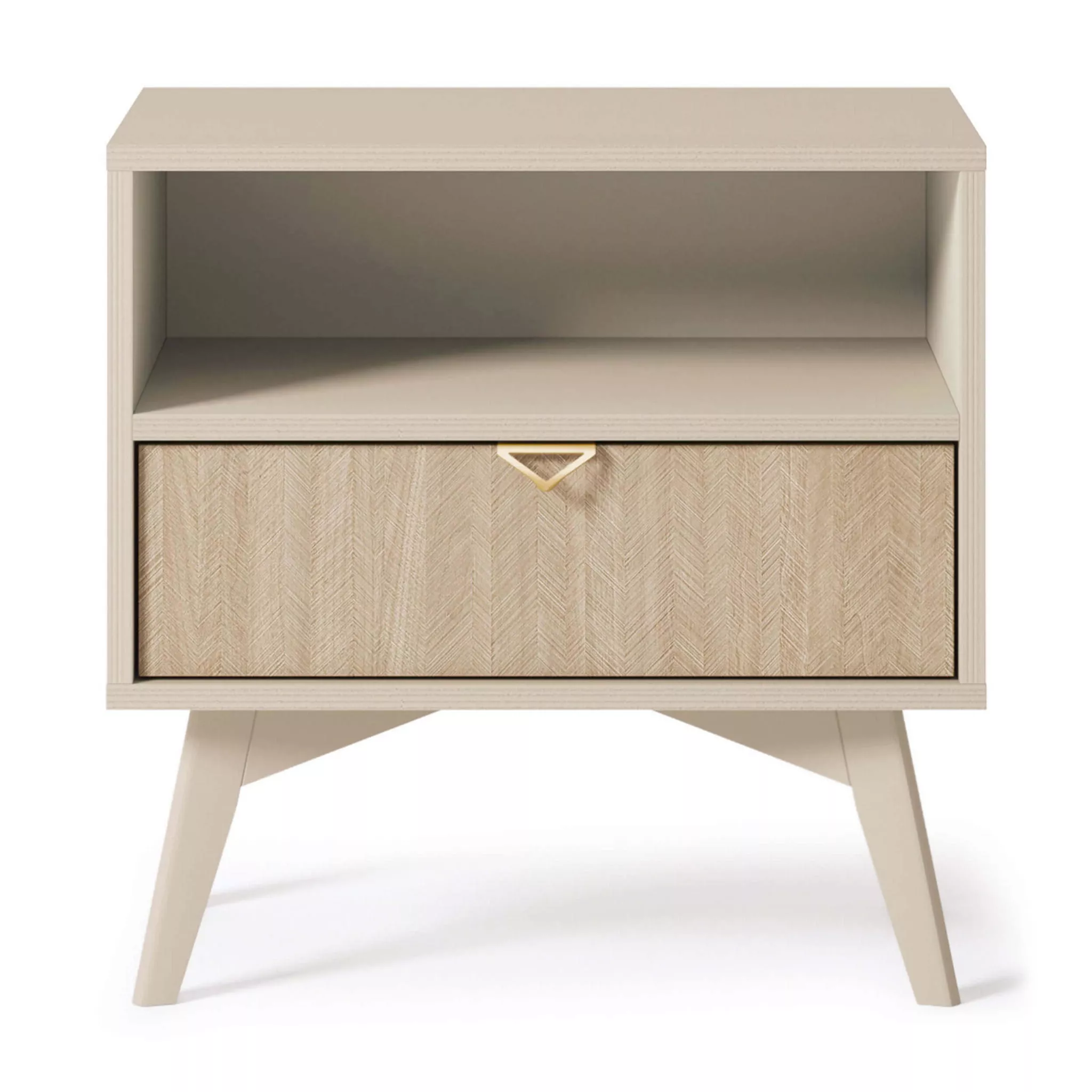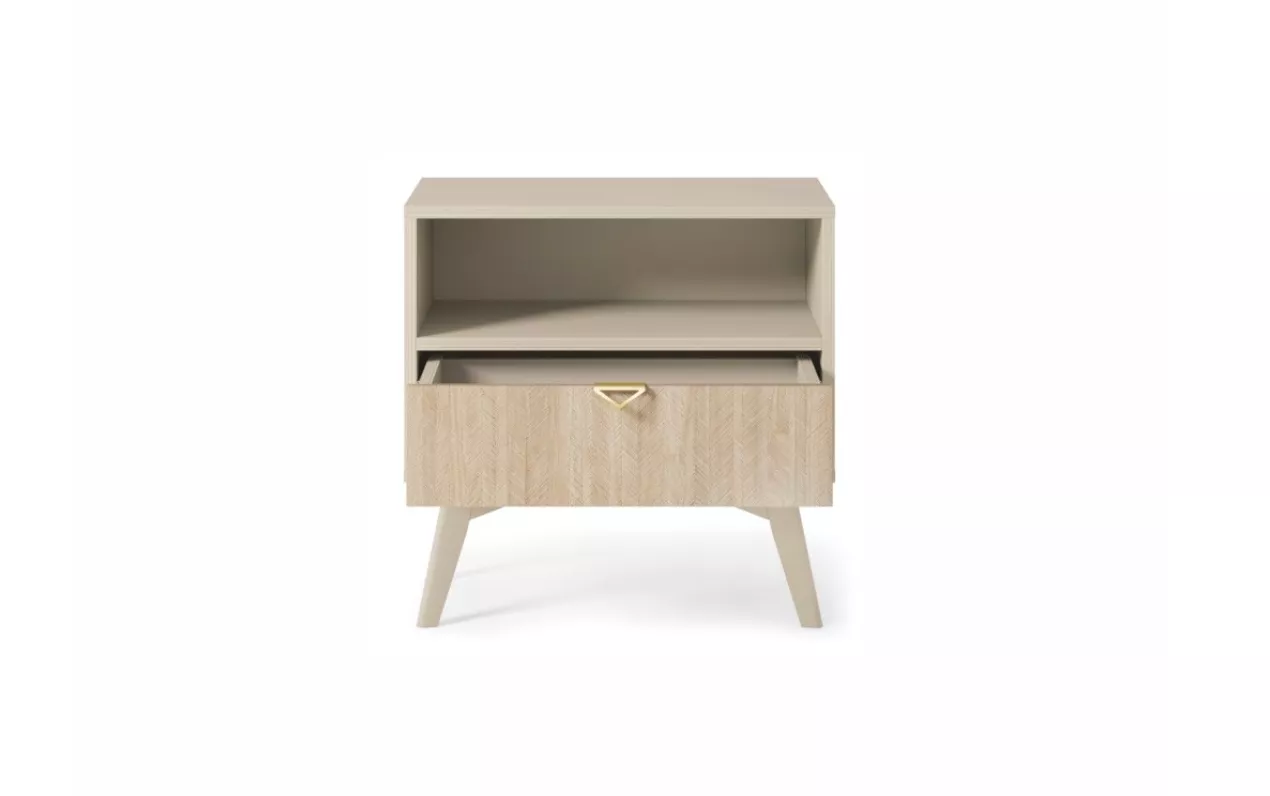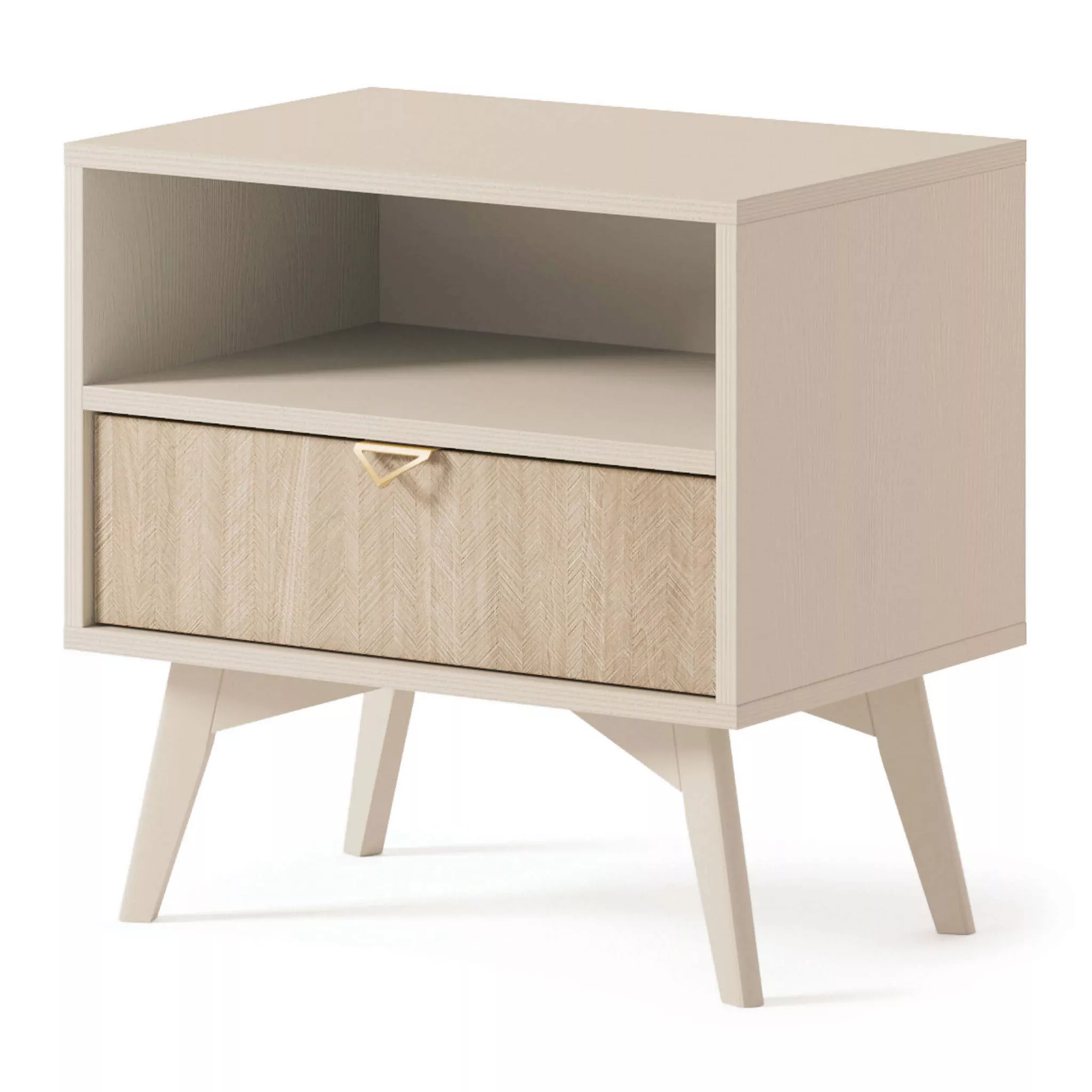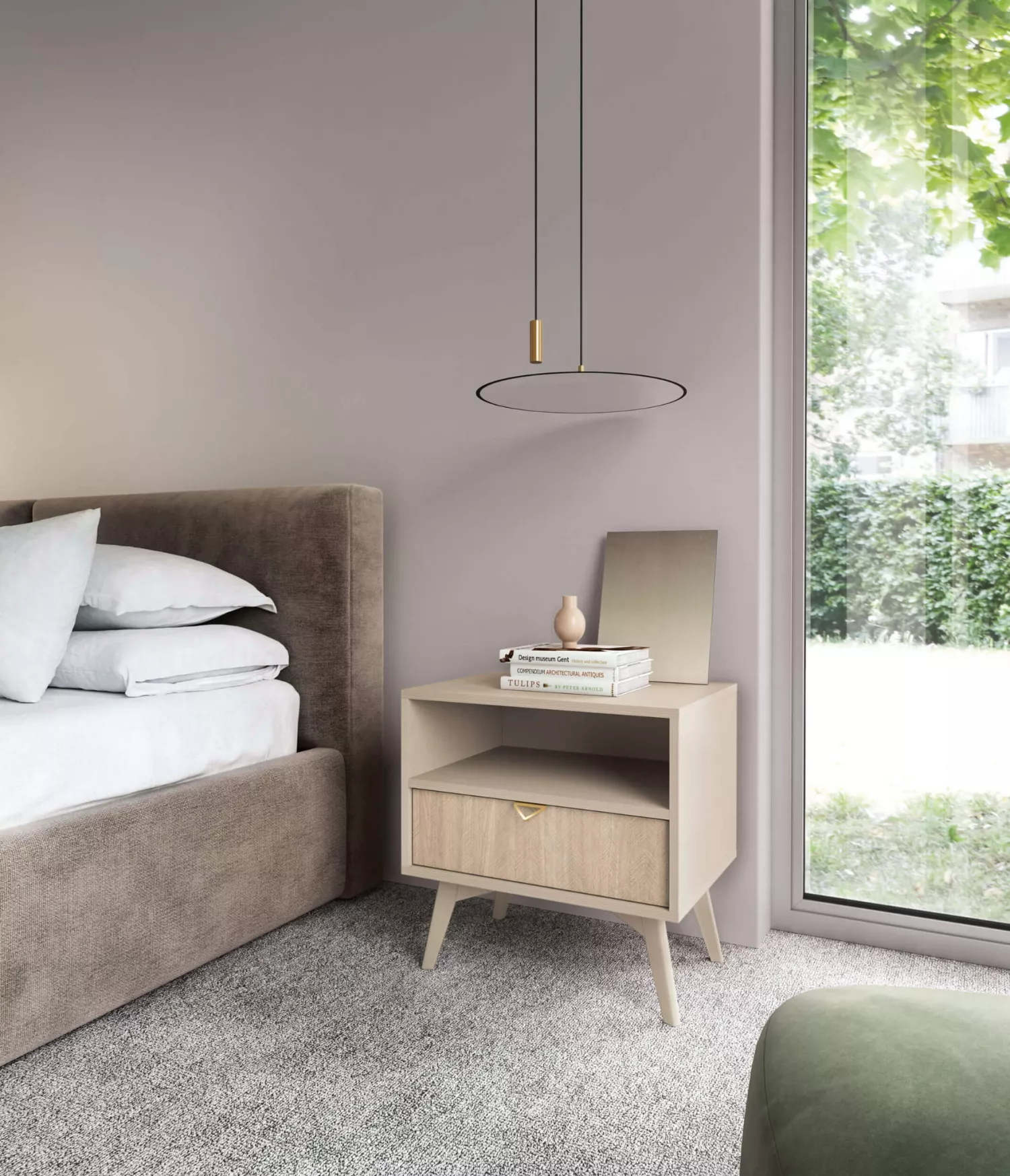 Noční stolek MEDEA je neodmyslitelnou součástí ložnice. Je vybaven prostorným šuplíkem pro rozečtenou knihu, nabíječku na telefon, kosmetiku a jiné drobnosti.