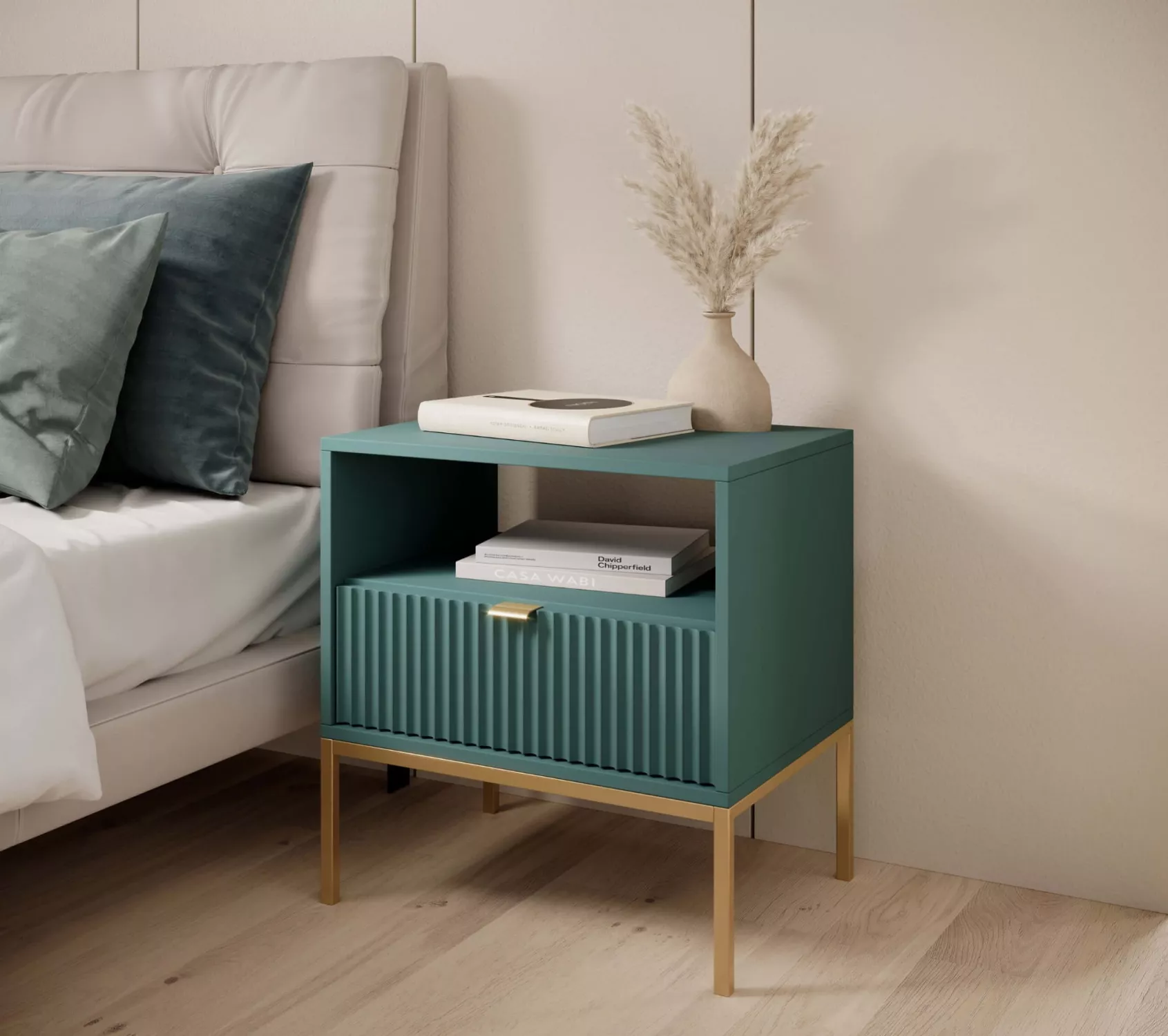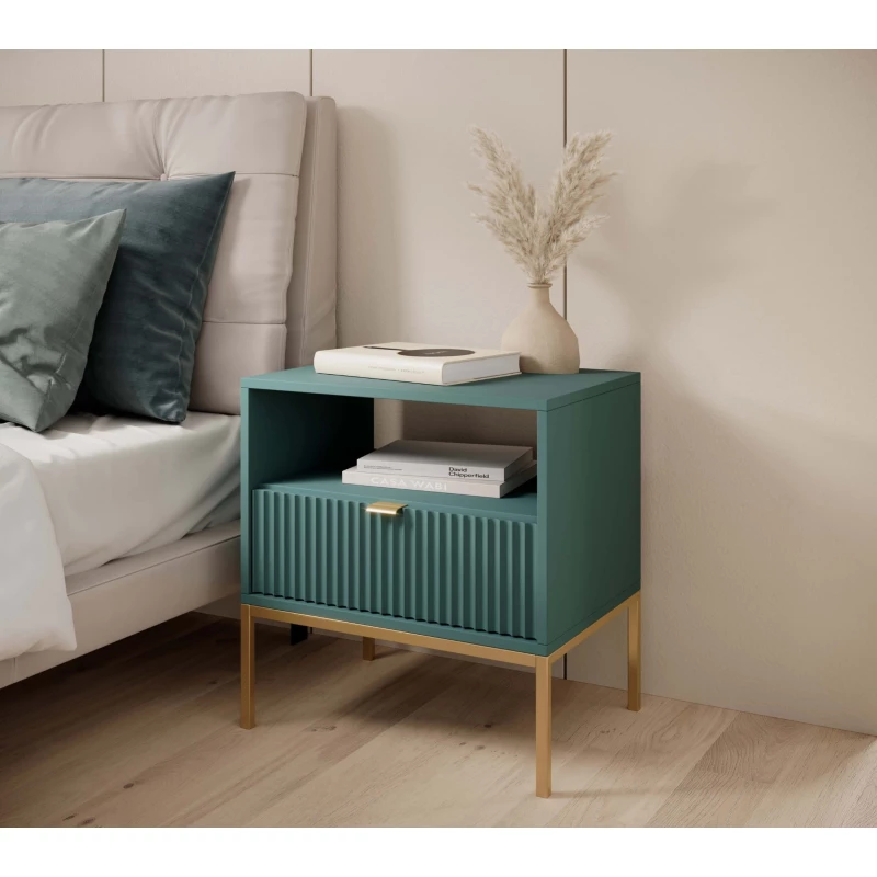 Noční stolek MISHEEL - modrozelený / zlatý