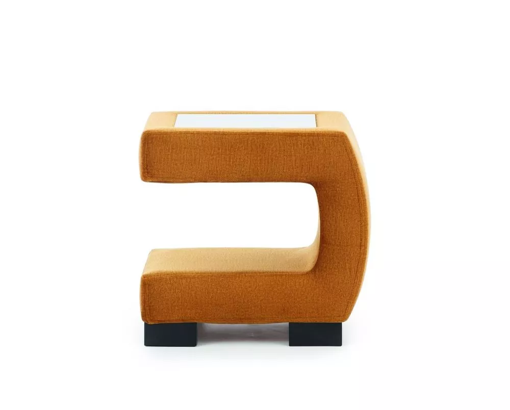 Čalouněný noční stolek GELA se hodí k postelím ze stejnojmenné kolekce. Zajímavý tvar stolku je doplněn o bílé sklo a dřevěné nožky.