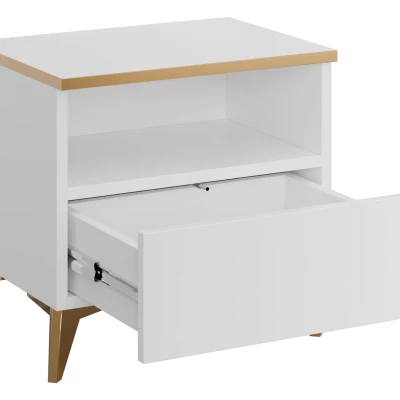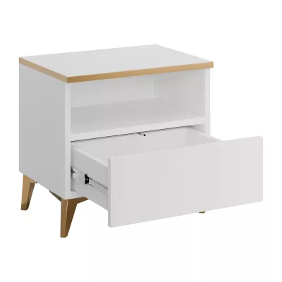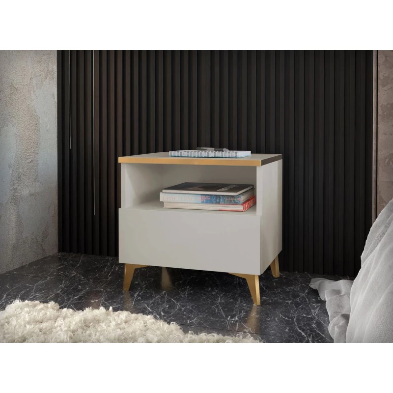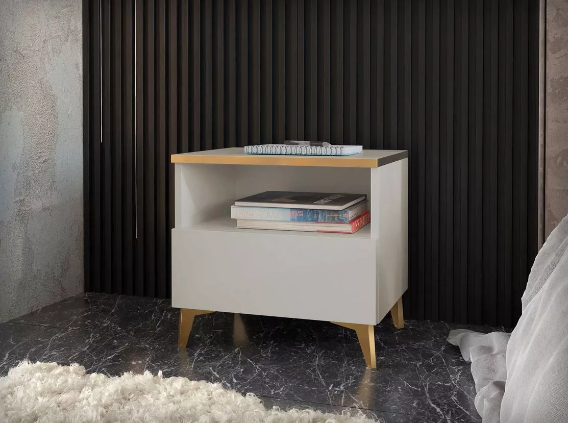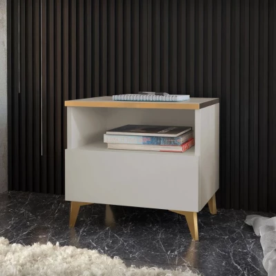 Noční stolek LIVA - lesklý béžový / béžový / zlatý