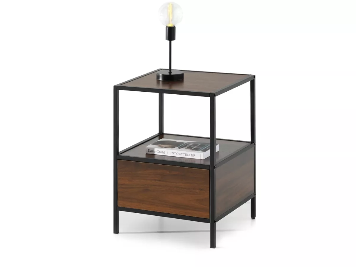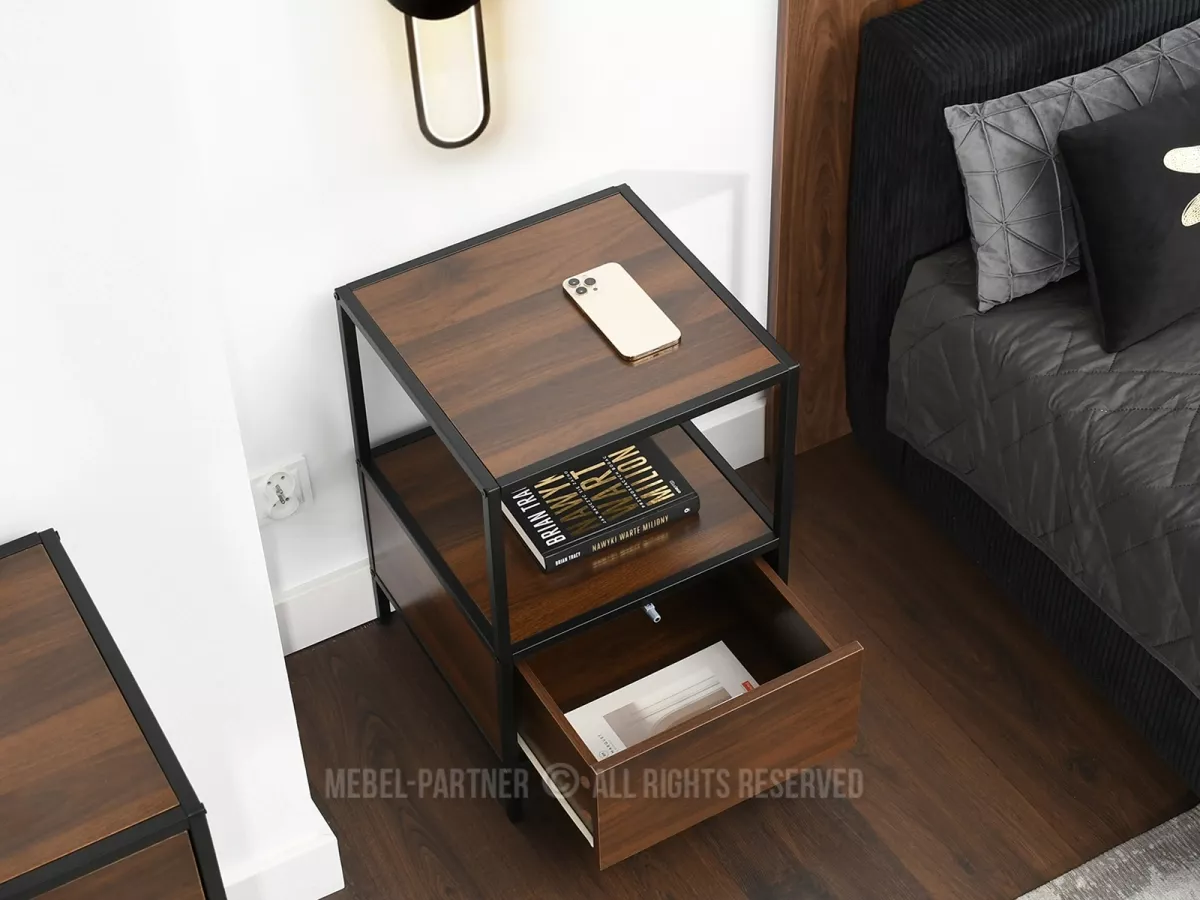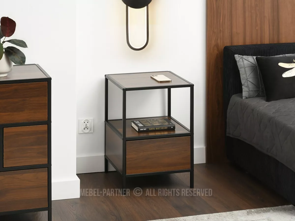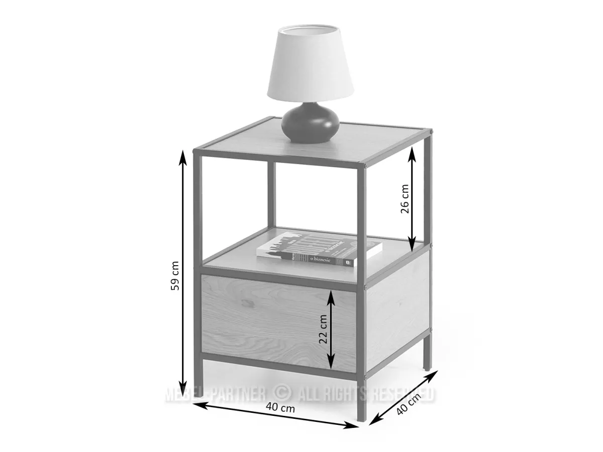 Noční stolek MAIRA je dokonalým řešením pro vyplnění prostoru vedle postele. Stolek je vybaven šuplíkem a otevřenou policí.