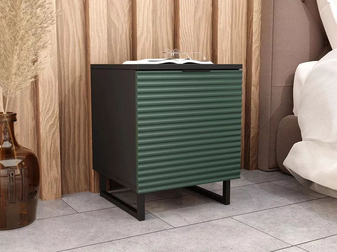 Stolek k posteli OVERTON - černý grafitový / zelený