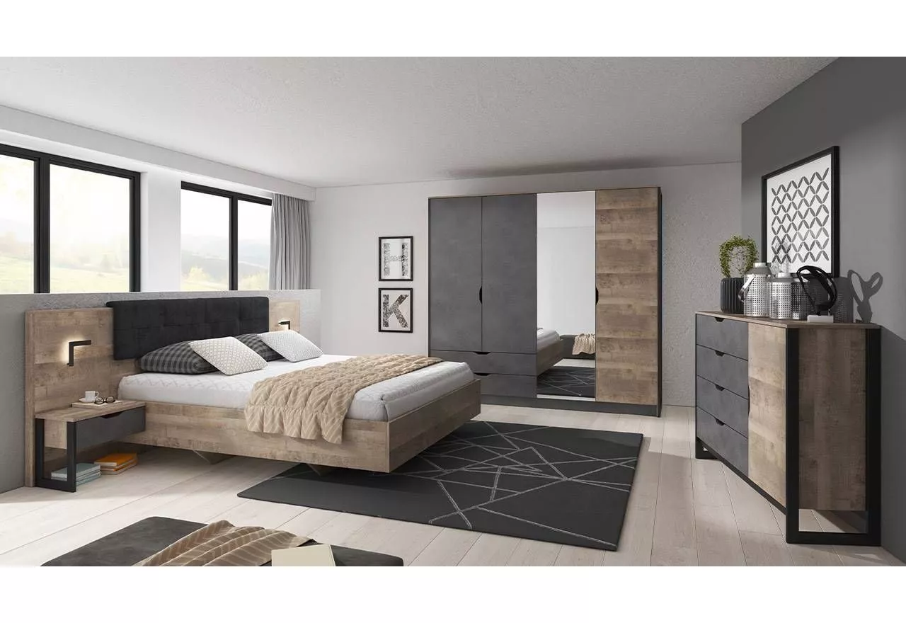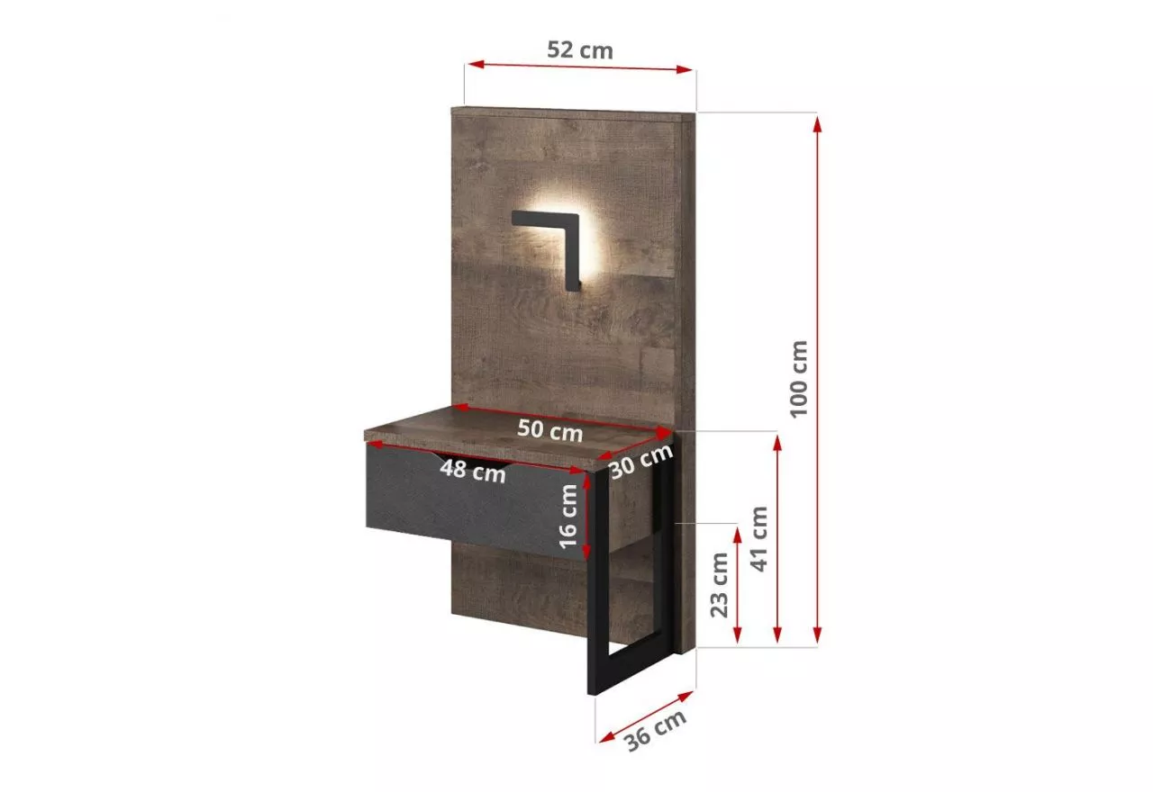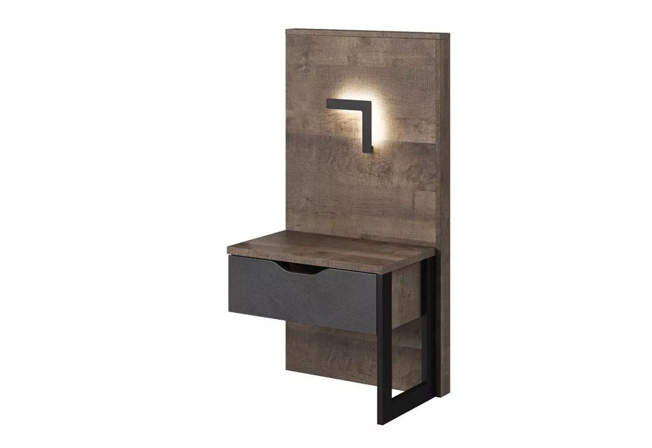 Set 2 nočních stolků GORDO v originálním industriálním stylu dodá ložnici jedinečnou loftovou atmosféru. Kombinace dekoru dubu s lehce poškrábaným, tmavě šedým dekorem matera působí syrově a přitom stylově. Každý stolek je vybaven praktickou zásuvkou. Zajímavé LED osvětlení podtrhne celkový dojem moderního, promyšleného interiéru.