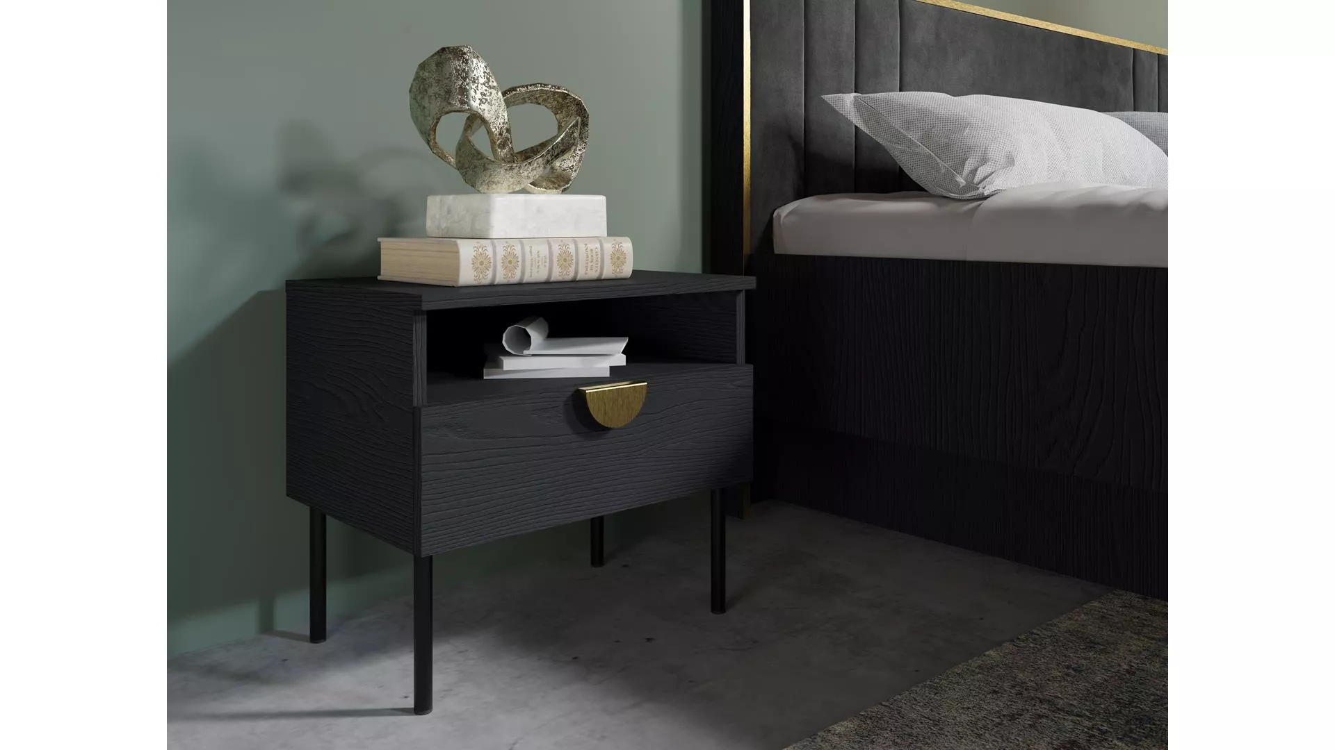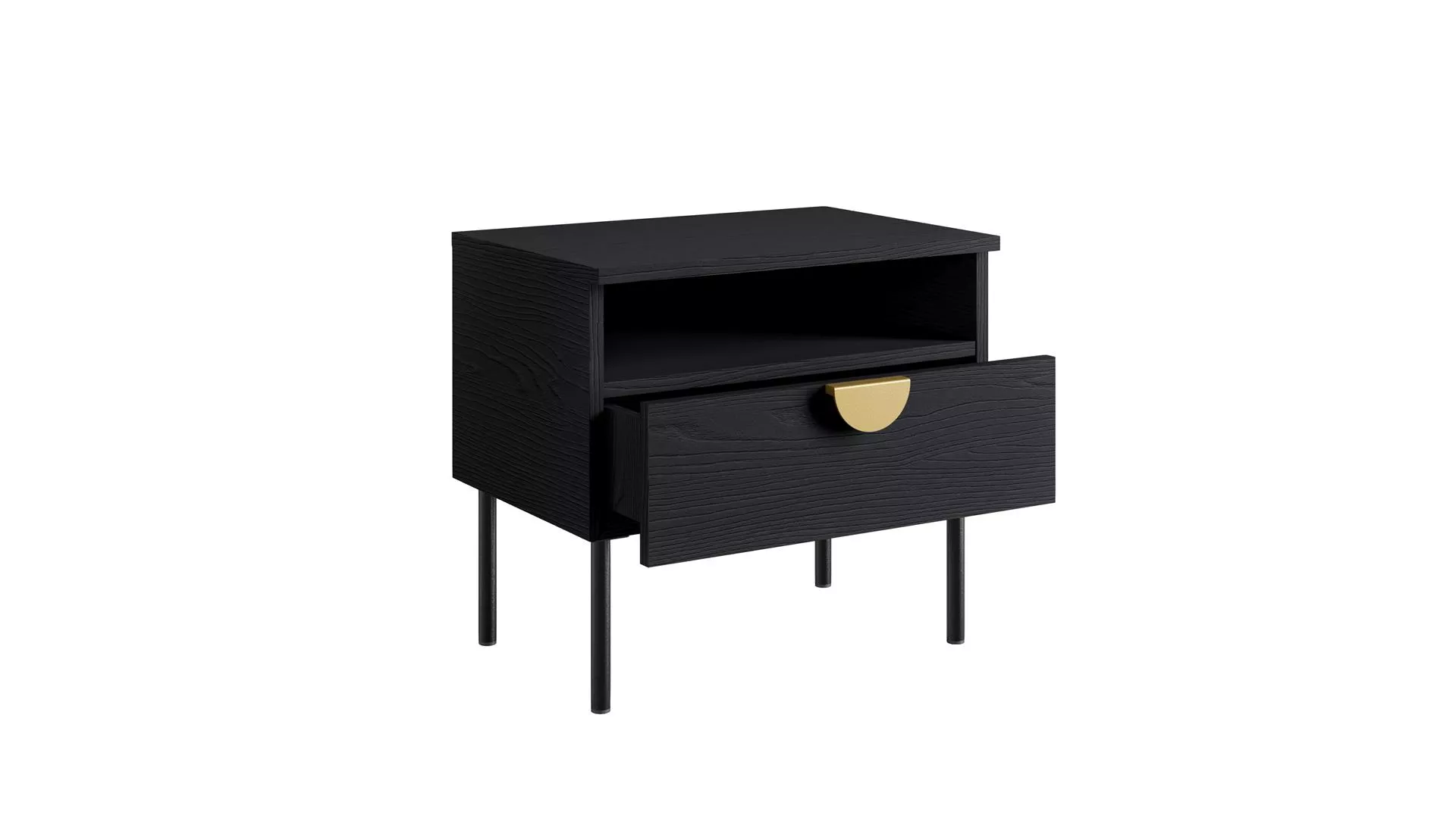 Dopřejte si set 2 nočních stolků MOSQURA, který zaujme výrazným designem a luxusními detaily. Praktická police a zásuvka nabízejí dostatek úložného prostoru. Elegantní provedení doplňují zlaté úchytky a kovové nohy s industriálním nádechem.