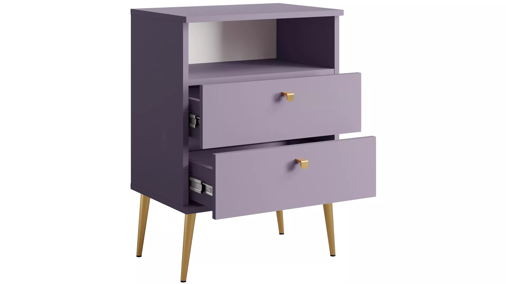 Objevte noční stolek RETIRO s elegantními liniemi a štíhlým tvarem na vysokých nohách. 2 praktické zásuvky a polička poskytují dostatek úložného prostoru pro vše potřebné. Díky moderním detailům se skvěle hodí jak do klasických, tak současných interiérů.