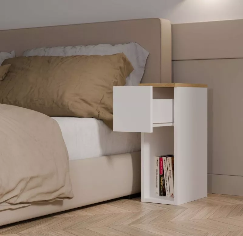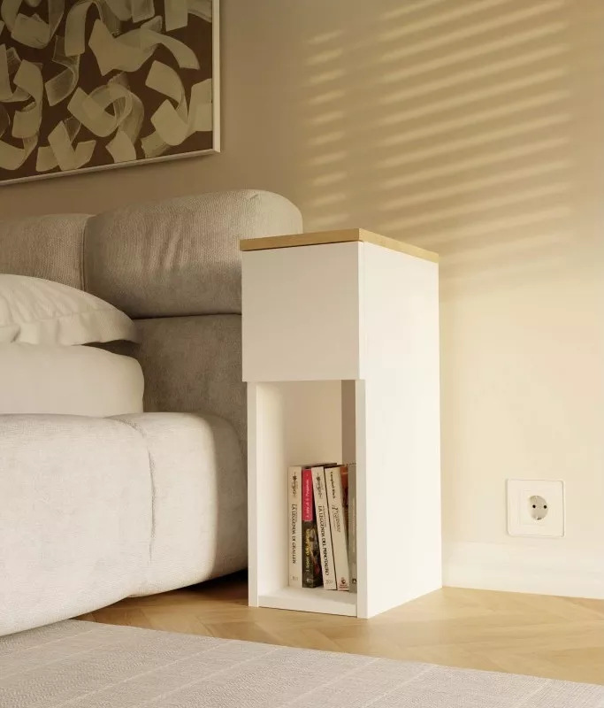 Noční stolek FALKVILE 1 - bílý / dub artisan