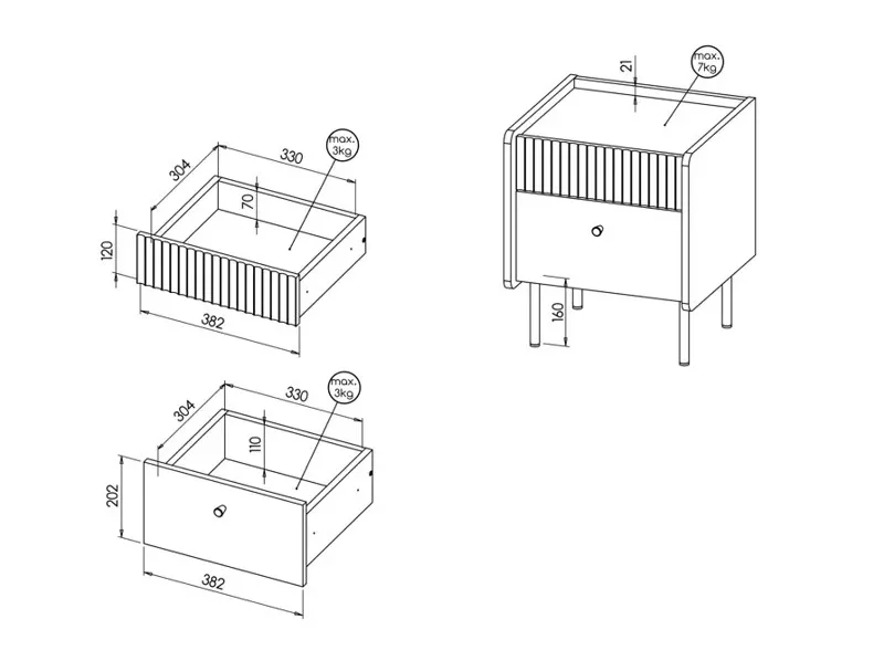 Noční stolek ASHEBORO spojuje luxusní vzhled s promyšlenou praktičností. Šuplík nabízí dostatek prostoru pro úschovu věcí. Drážkované čelo šuplíku zaujme na první pohled a přidává stolku jedinečný styl.