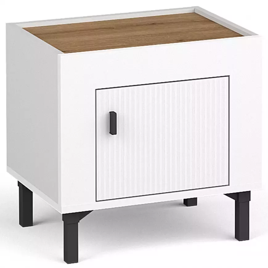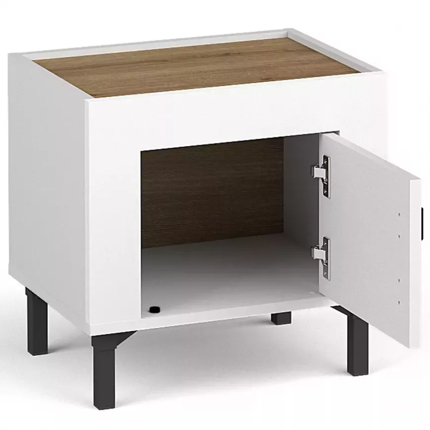 Noční stolek AUROVA - bílý / dub whiskey