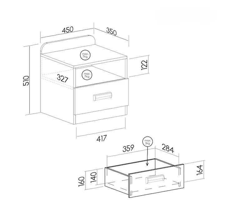 Noční stolek CEDAR nabízí úložný prostor v podobě šuplíku a otevřené police pod horní deskou. Díky své barevné kombinaci skvěle zapadne do skandinávského stylu každého studentského pokoje.