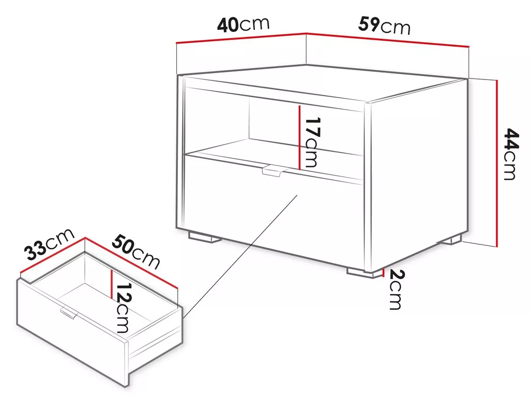 - čelo zásuvky: MDF o síle 18 mm potažená PVC fólií