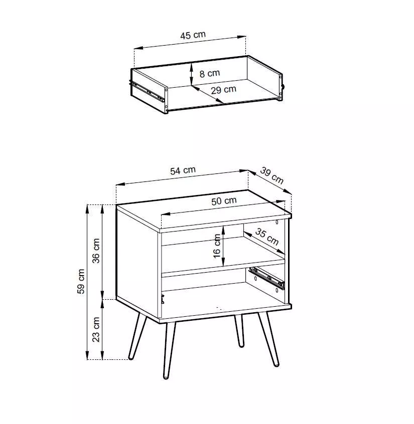 Noční stolek JENY 2 disponuje úložným prostorem pod horní deskou a šuplíkem se systémem otevírání Push-to-open, což zpříjemní každodenní používání. Stolek na první pohled zaujme svým drážkovaným čelem šuplíku.
