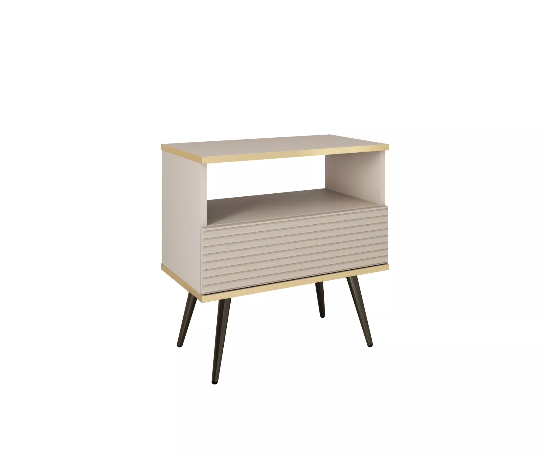 Noční stolek JENY 2 - béžový / zlatý / černé nožky