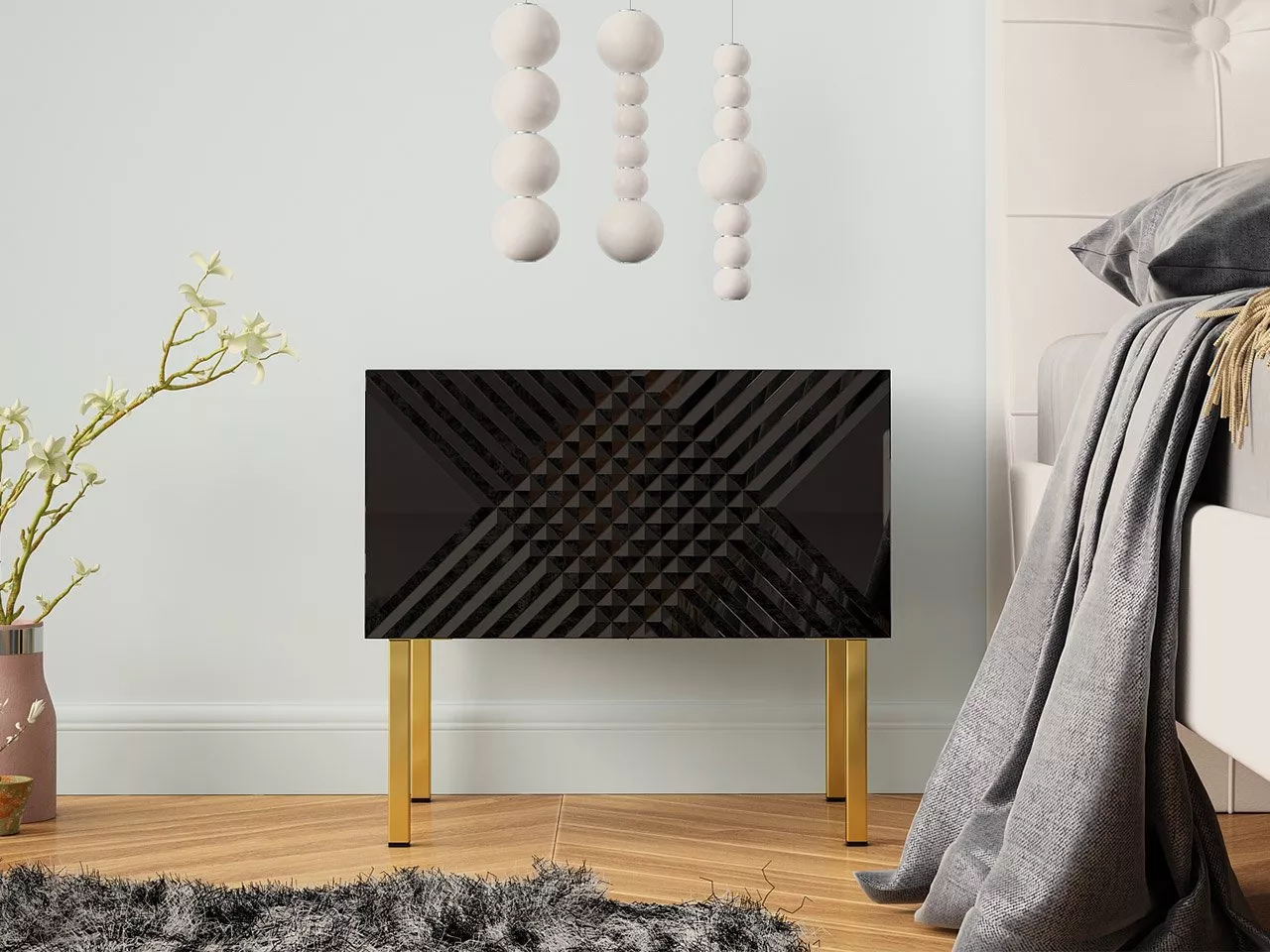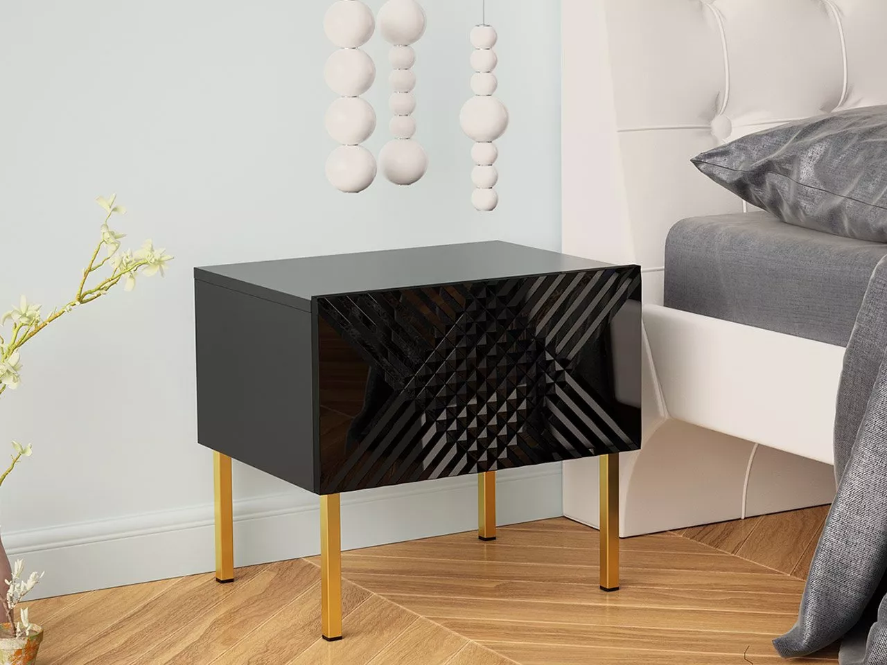 VÝPRODEJ - Noční stolek HUNE - černý / lesklý černý