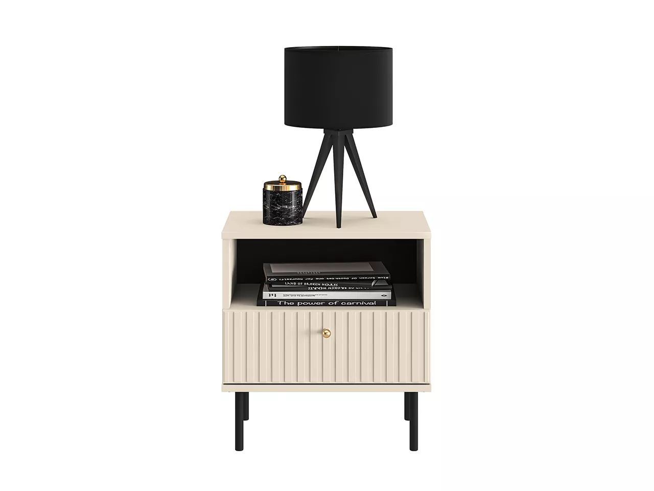 Noční stolek FAREL je neodmyslitelnou součástí ložnice. Nabízí úložný prostor v podobě šuplíku a přihrádky.