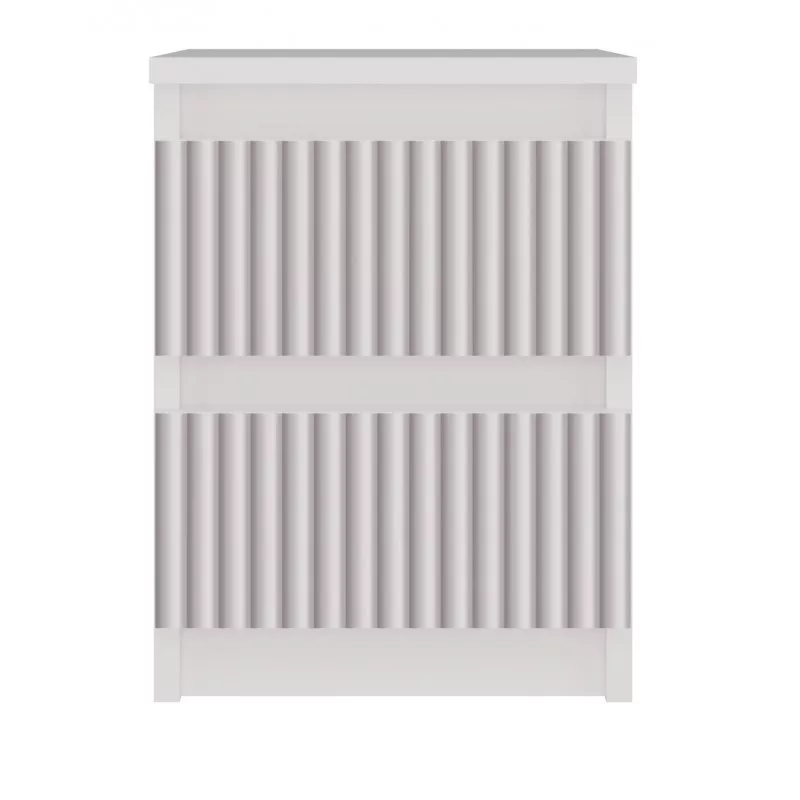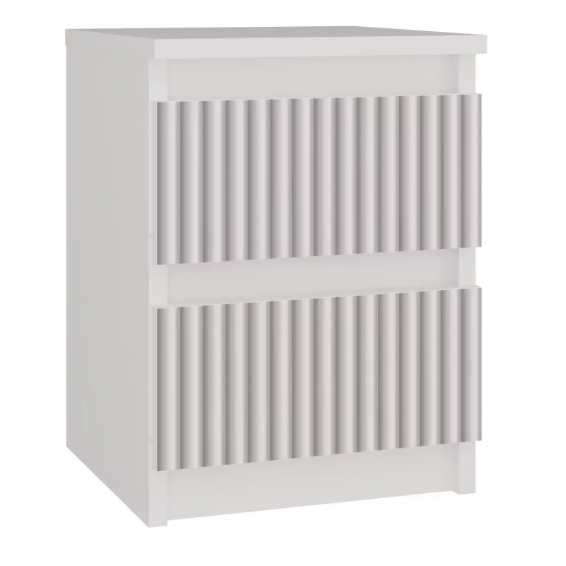 Noční stolek DUSTER je nezbytným vybavením dětského pokoje. Je vybaven 2 praktickými šuplíky. Moderní vzhled stolku doplňují vertikální barevné vzory a bezúchytkový systém otevírání.