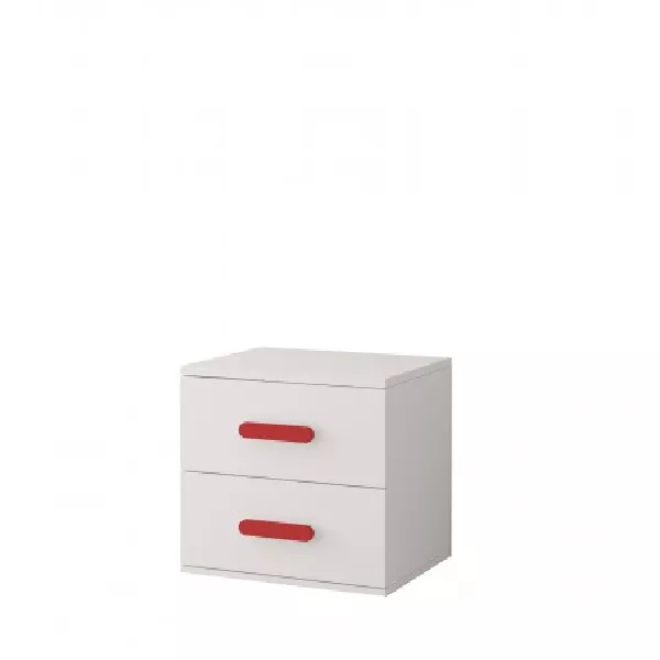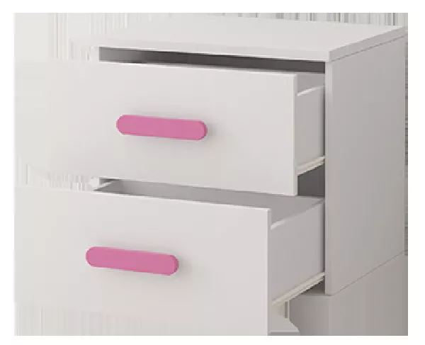 Noční stolek s dvěma zásuvkami. Ideálně se hodí do dětského pokoje. Charakteristickým rysem této kolekce je široká
