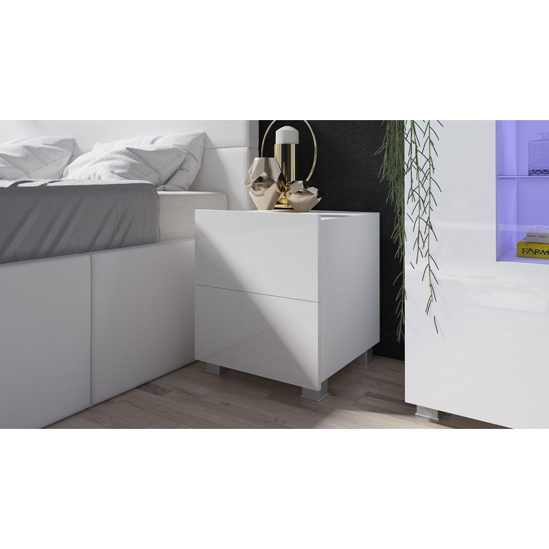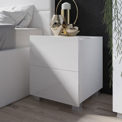 Noční stolek CHEMUNG 3 - bílý / lesklý bílý