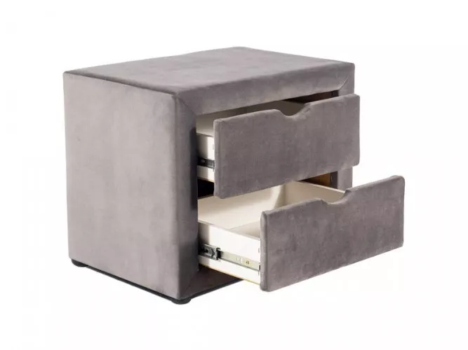 Noční stolek se 2 šuplíky TADEO nabízí dostatek úložného prostoru. Stolek je potažený látkou což zamezí poškrábání a zašpinění zdi.