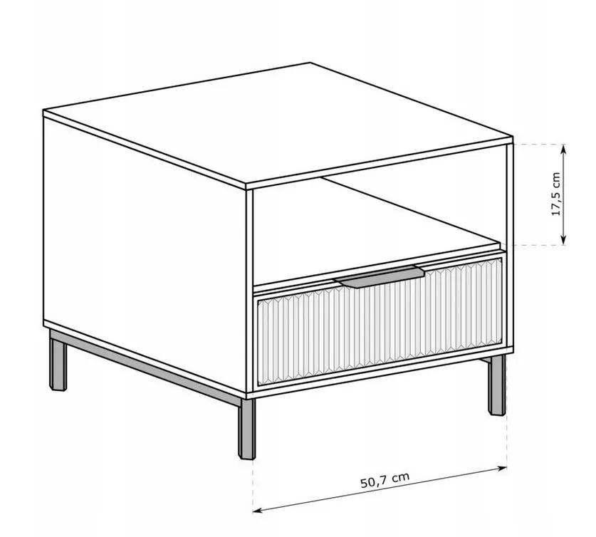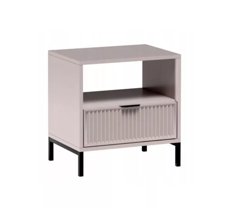 Noční stolek CORA je vybaven praktickou zásuvkou a poličkou, kam uložíte všechny potřebné drobnosti, které potřebujete mít nablízku i při spánku. Vysoké kovové nožky dodávají stolku lehkost, a navíc usnadňují udržování pořádku po stolkem.