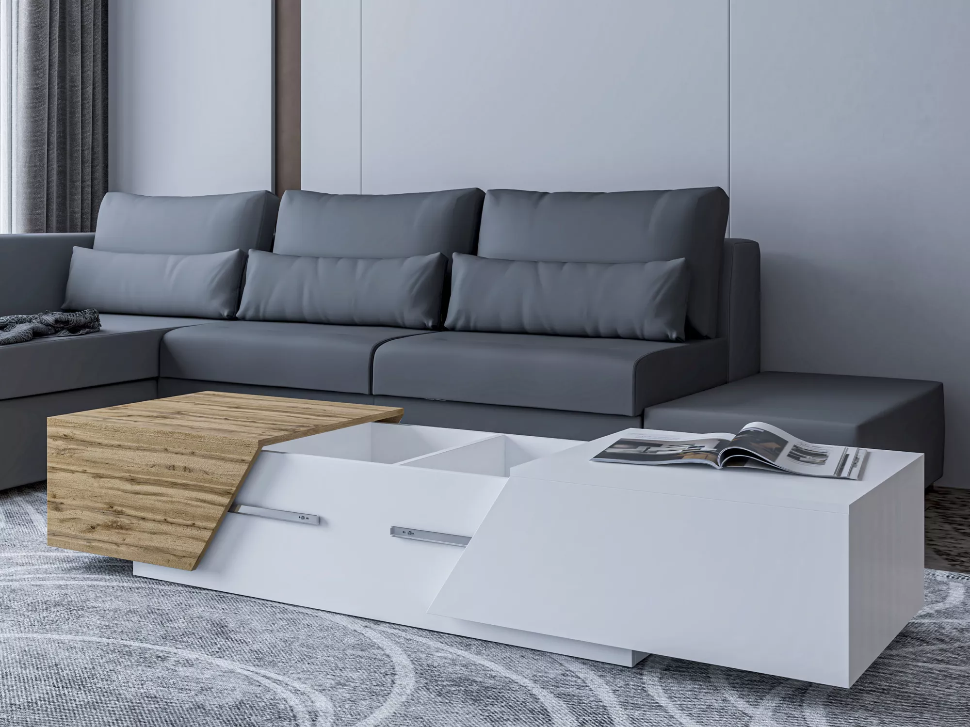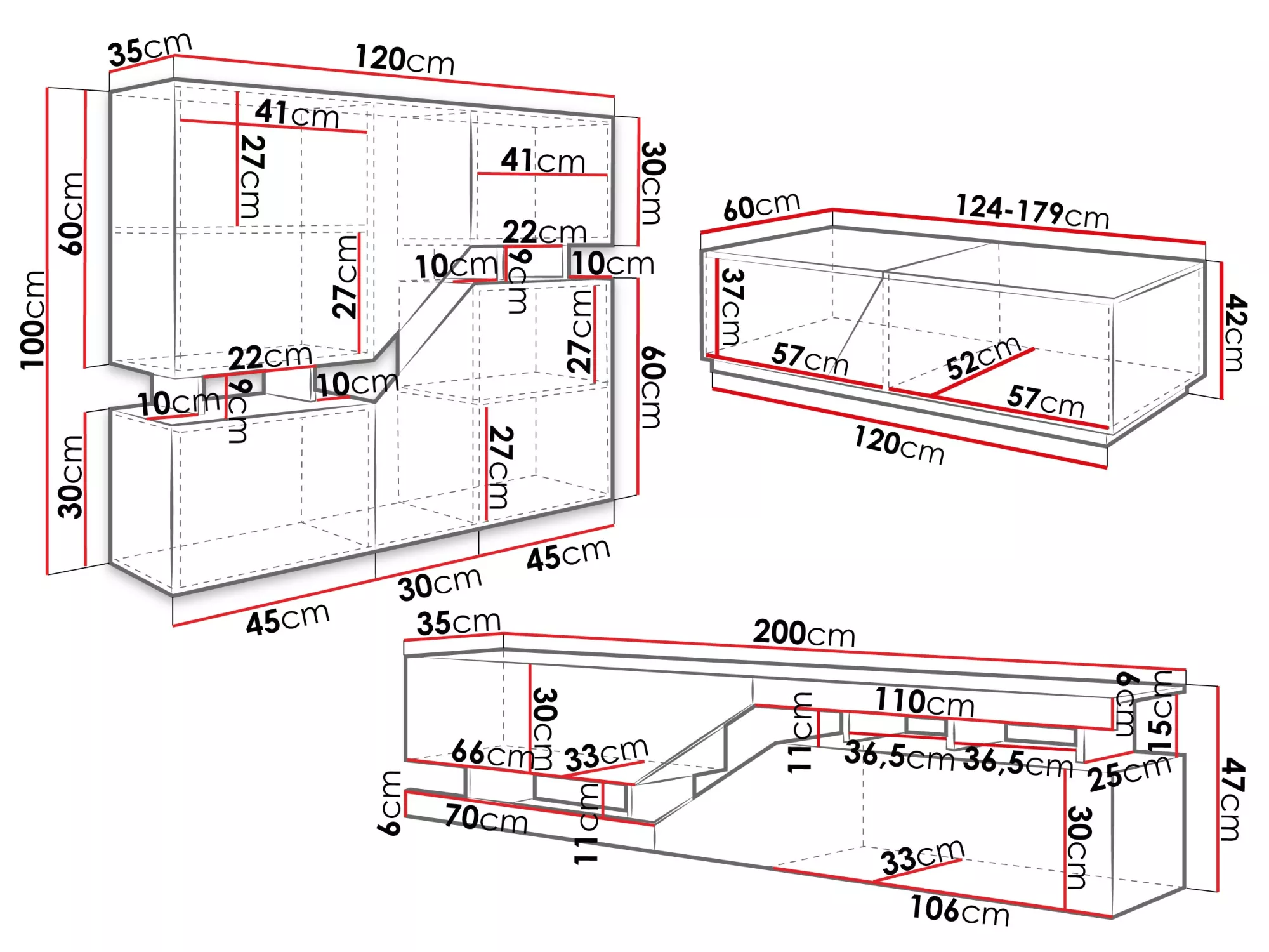 Sestava ALISON představuje ideální spojení stylu a funkčnosti pro obývací pokoje zařízené v moderním i skandinávském stylu. Svěží styl, jedinečné geometrické tvary a spojení přírodního dekoru dřeva s neutrálními barvami ohromí nejednoho návštěvníka vašeho domu. Sestava také nabízí spoustu úložného prostoru v podobě komody s dvířky, samozřejmostí je i TV stolek a praktický konferenční stolek.