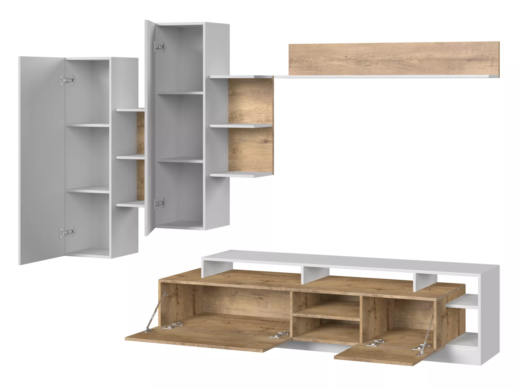 Sestava nábytku do obývacího pokoje ERICKA - dub grande / bílá + LED osvětlení ZDARMA