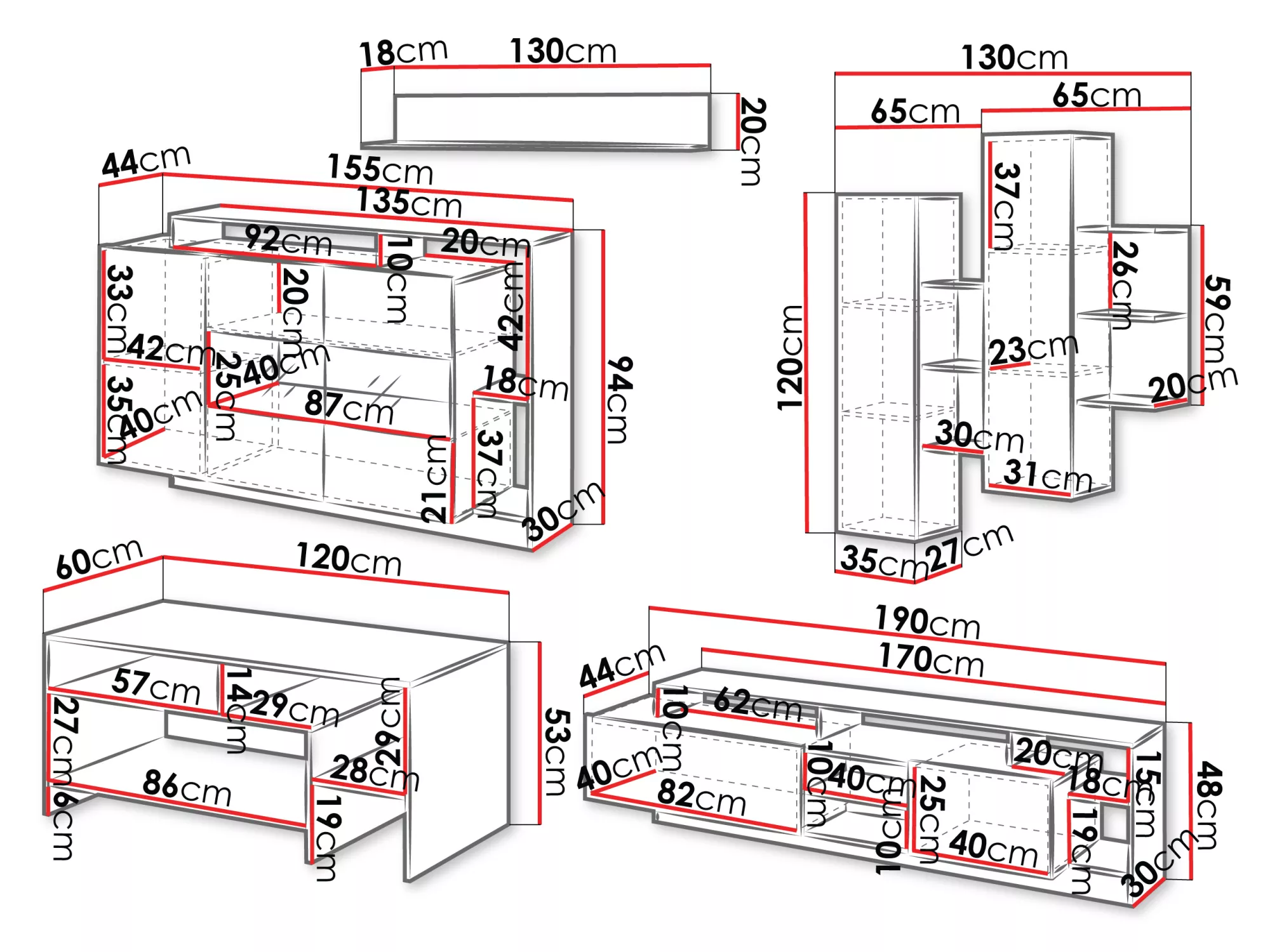 - TV stolek: 190/48/44 cm