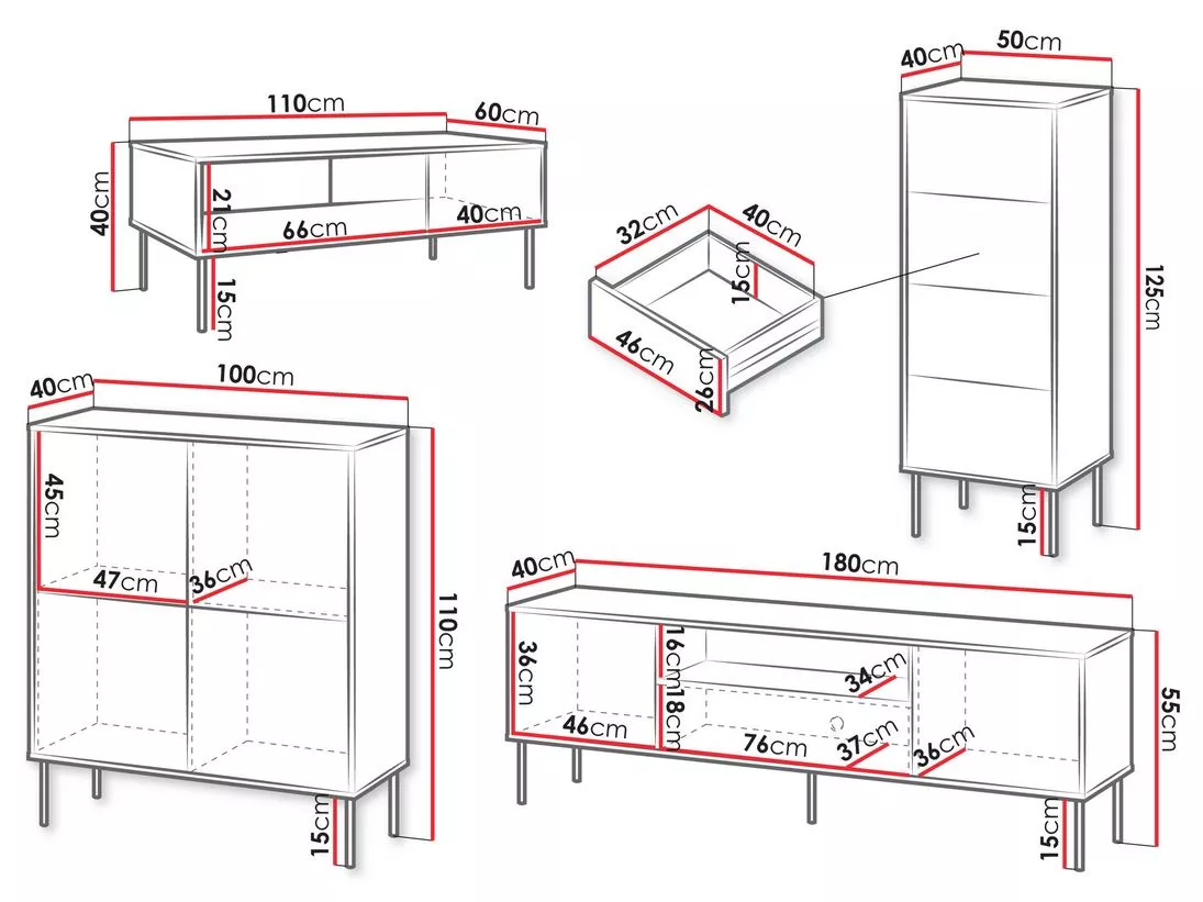 - televizní stolek: 180/55/40 cm