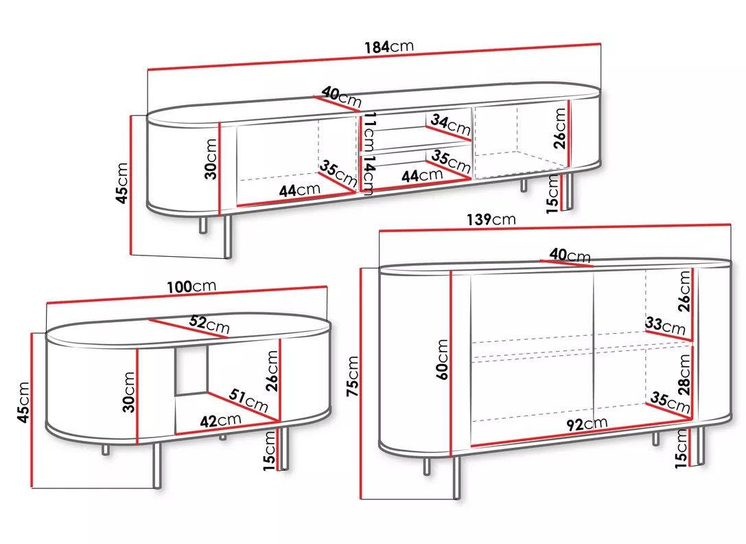 - televizní stolek: 184/45/40 cm