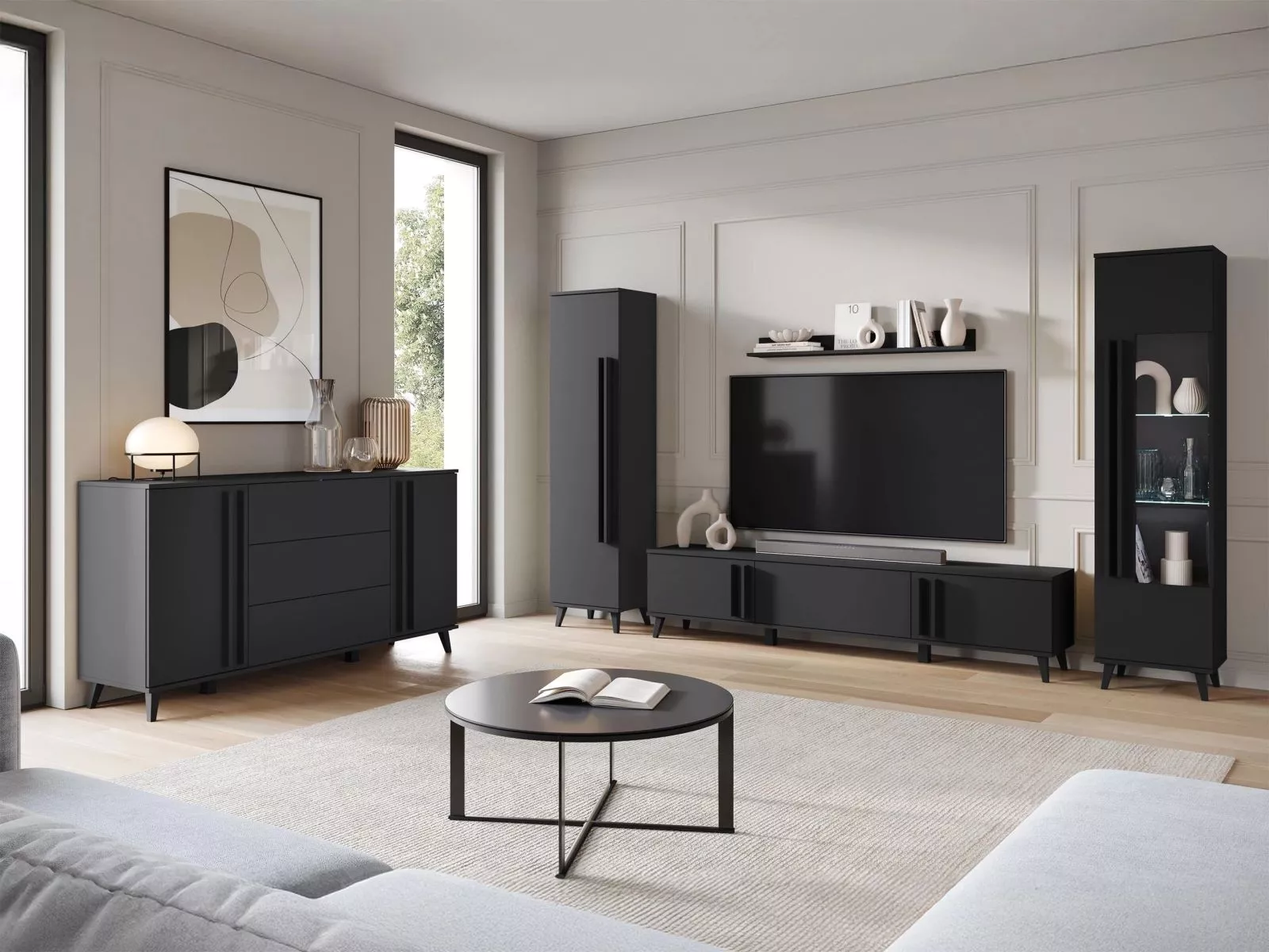 Sestava do obývacího pokoje POULSBO 4 - černá grafitová + LED osvětlení ZDARMA
