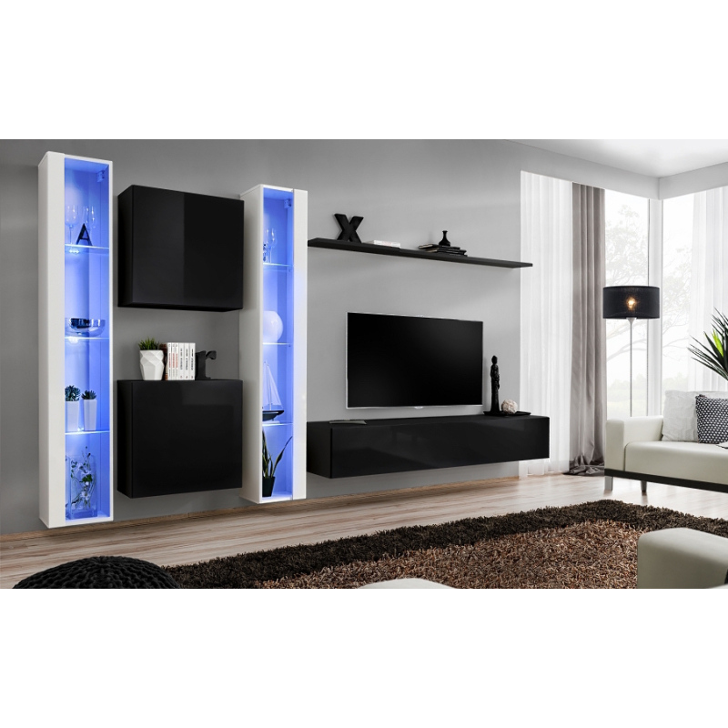 Stěna do obývacího pokoje RIONATA 16 - bílá / černá