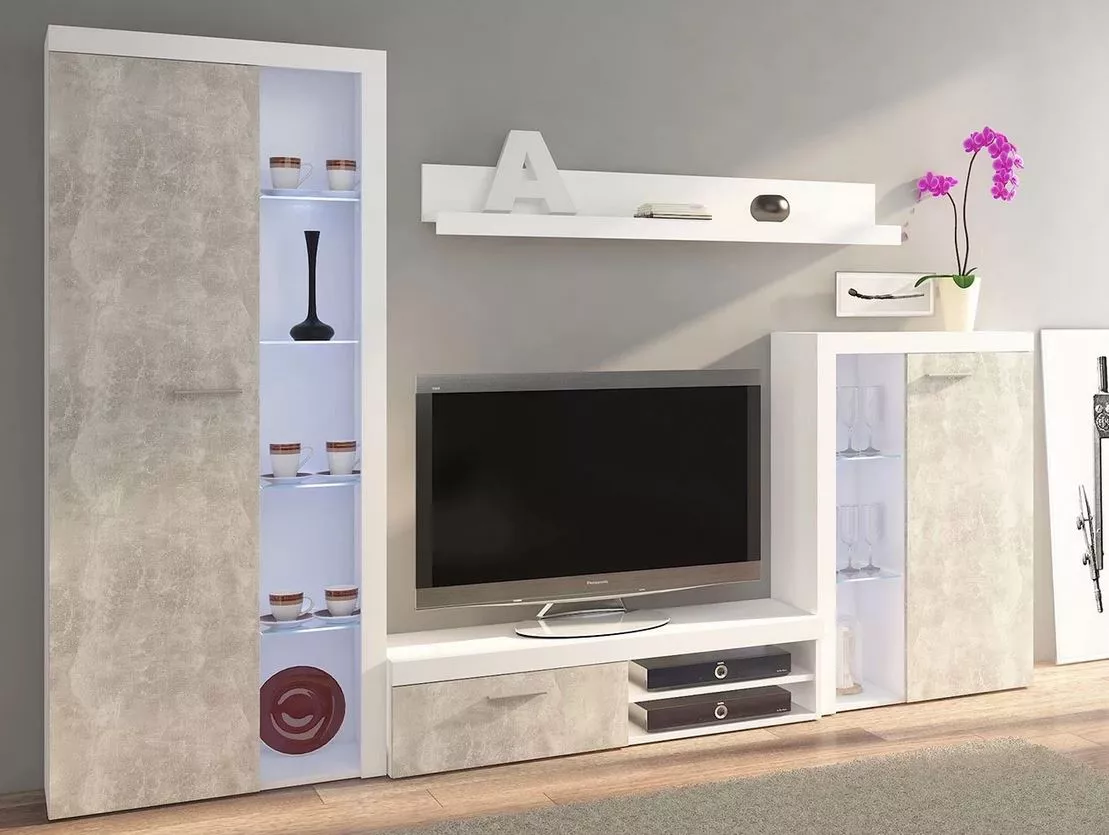 Moderní obývací stěna THISE - beton / bílá