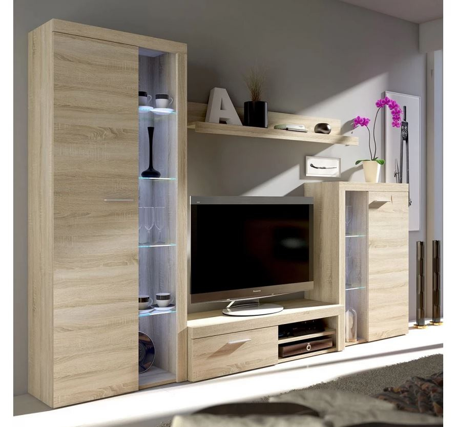Moderní obývací stěna KILEEN - dub sonoma + LED osvětlení ZDARMA
