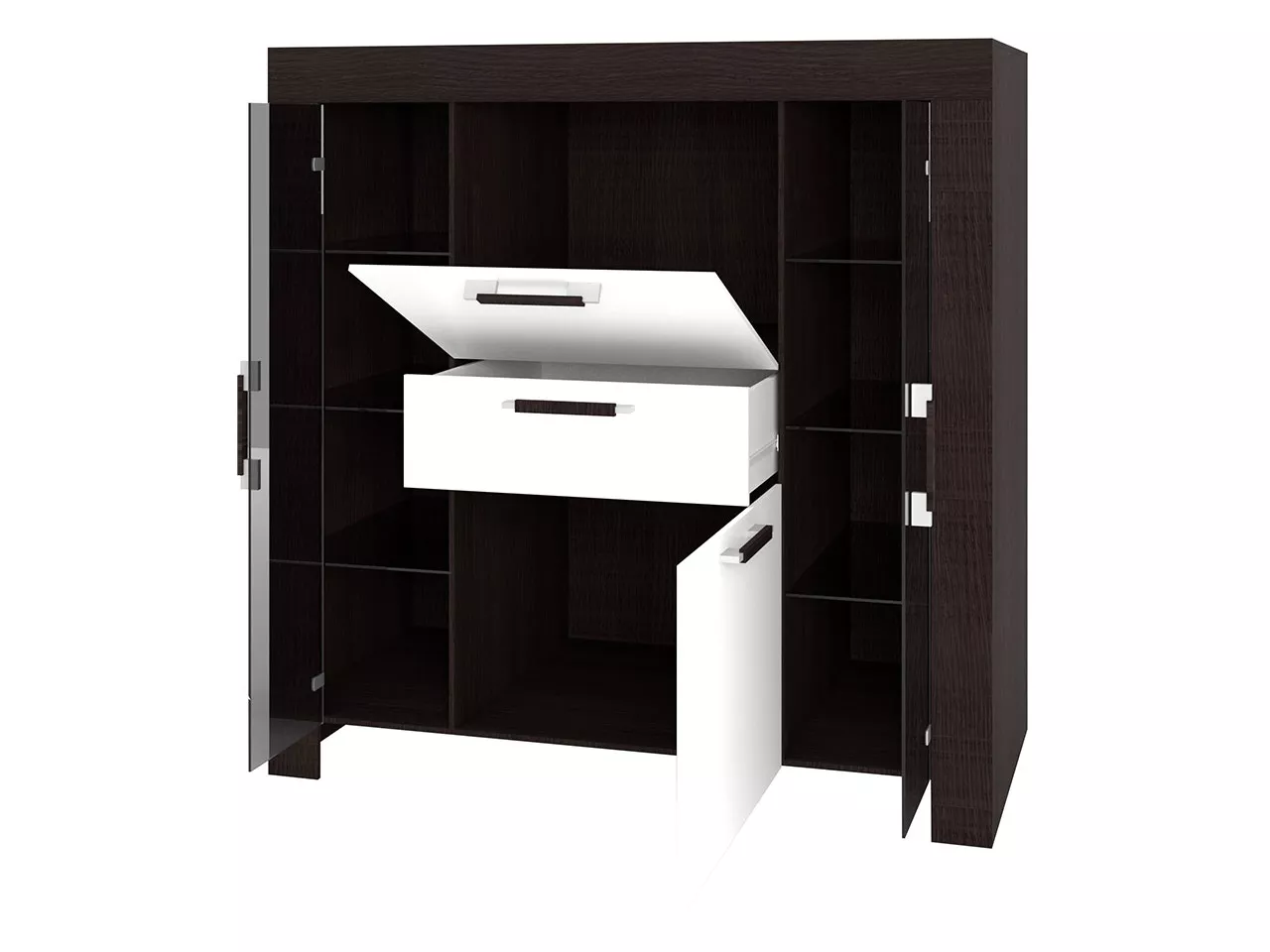 - prosklená kombinovaná komoda: 130/131/42 cm