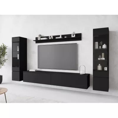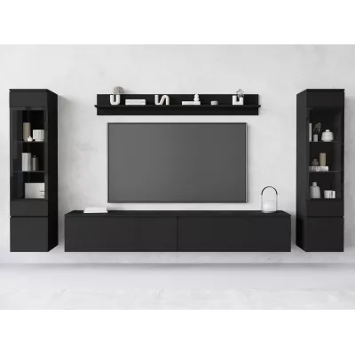 Obývací stěna WANDA nabízí jednoduché a funkční vybavení vašeho obývacího pokoje. Skládá se z prostorné TV skříňky, která vám umožní uložit nejnutnější předměty a schovat kabeláž, závěsné police na vystavení fotorámečků a květin a 2 prosklených vitrín.