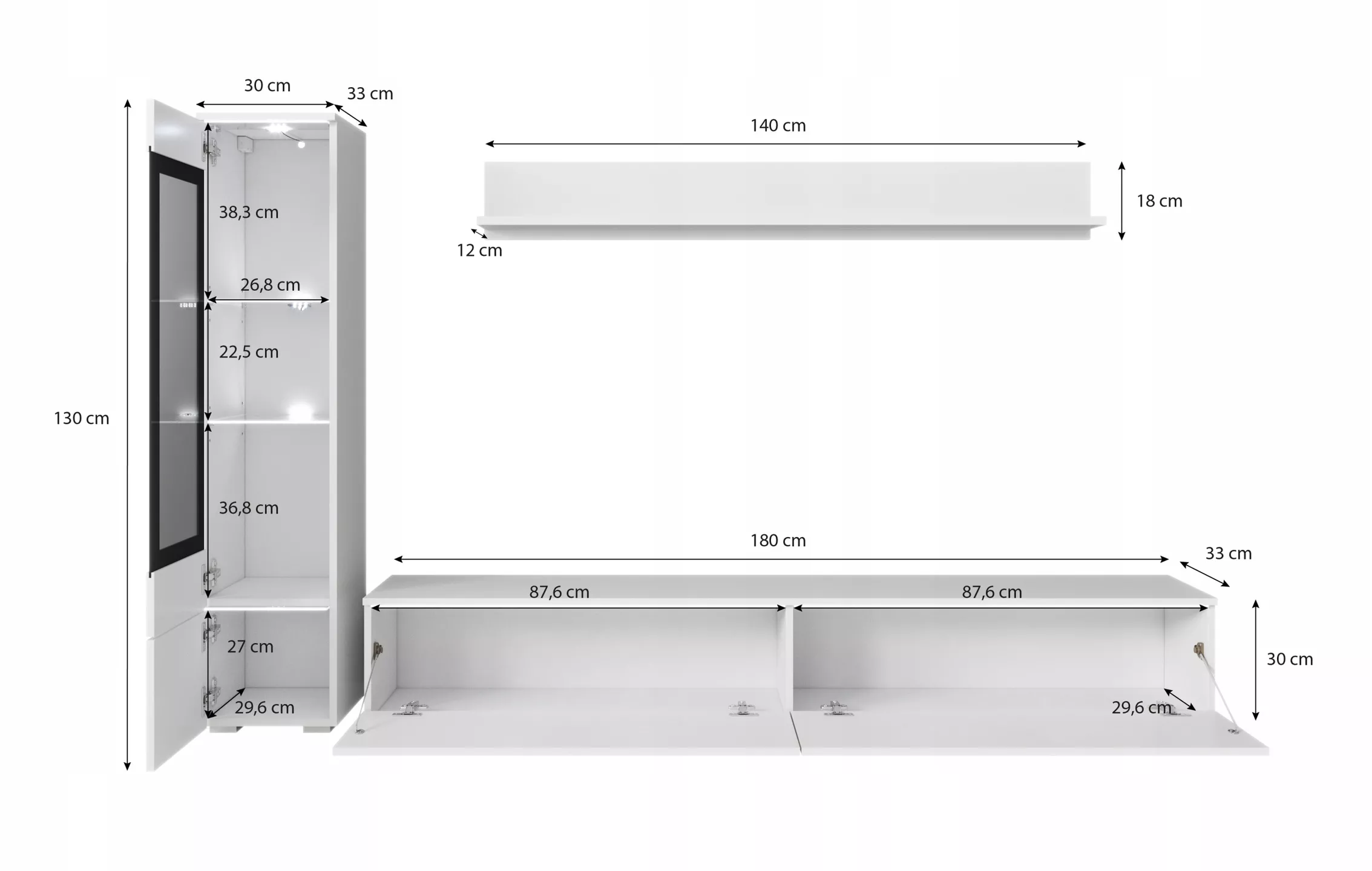 - vitrína: 30/130/33 cm