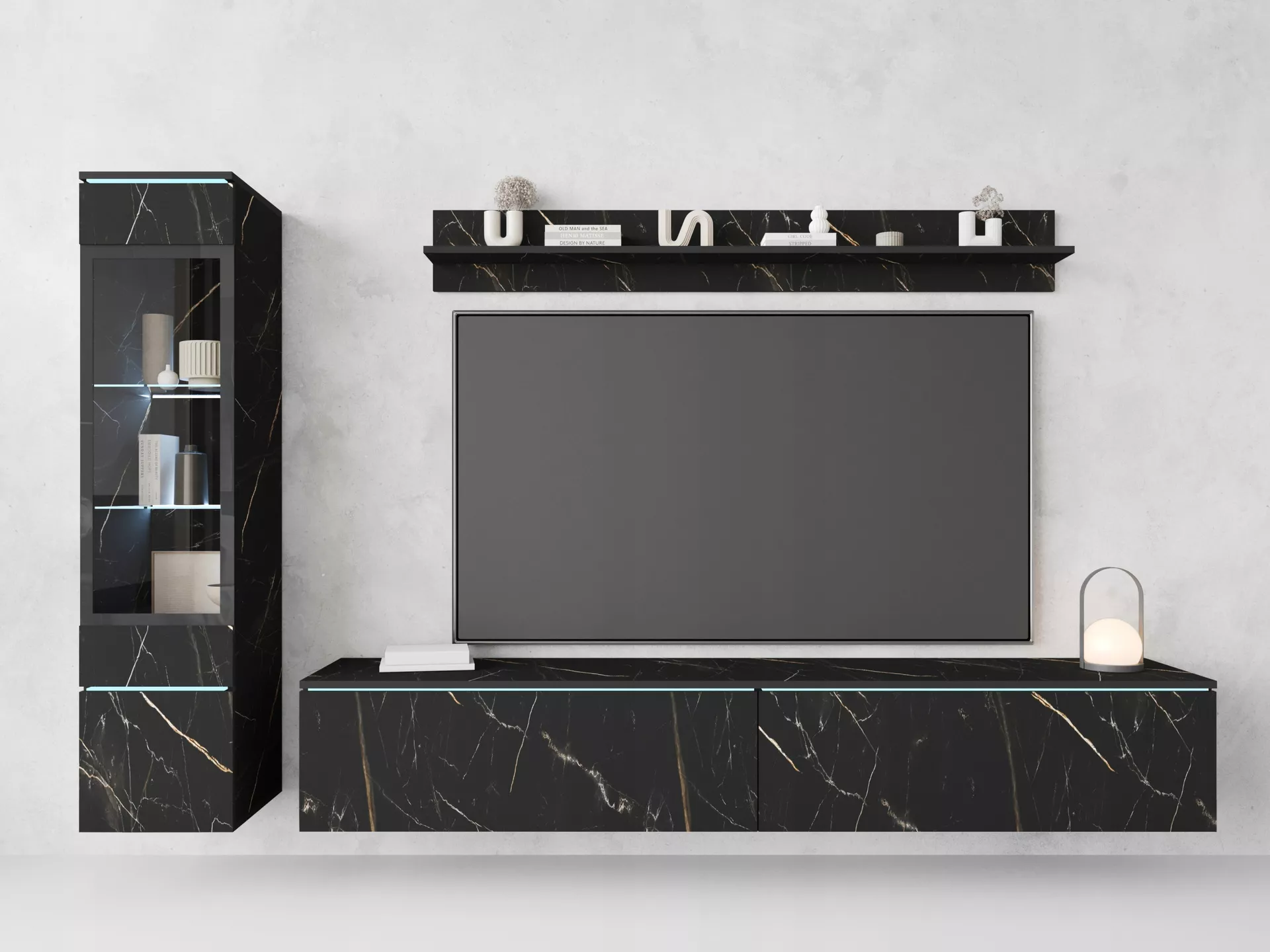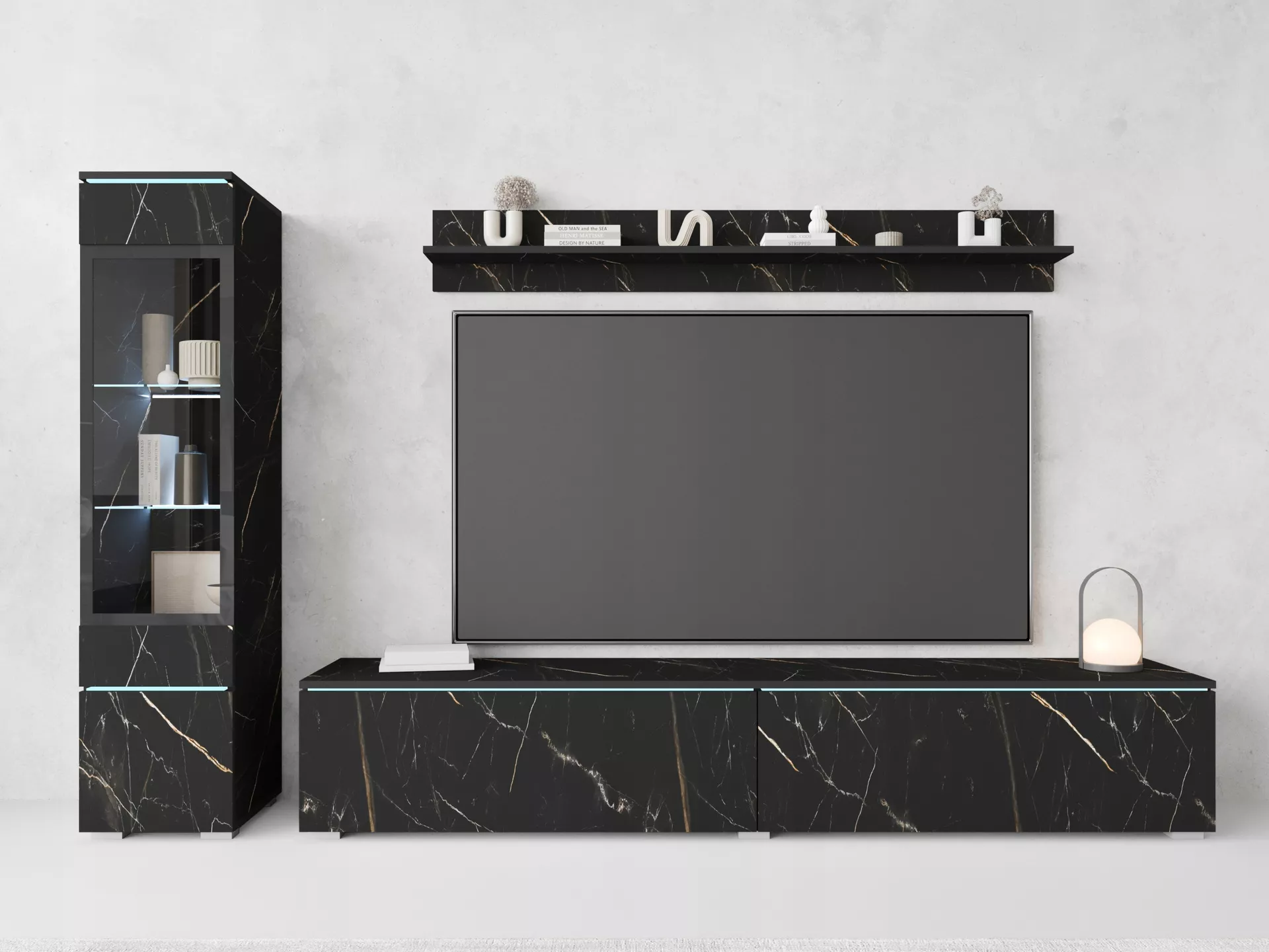 Stěnu dodáváme bez vyobrazeného LED osvětlení. Vhodné modely k dokoupení najdete v sekci Doporučujeme přikoupit.