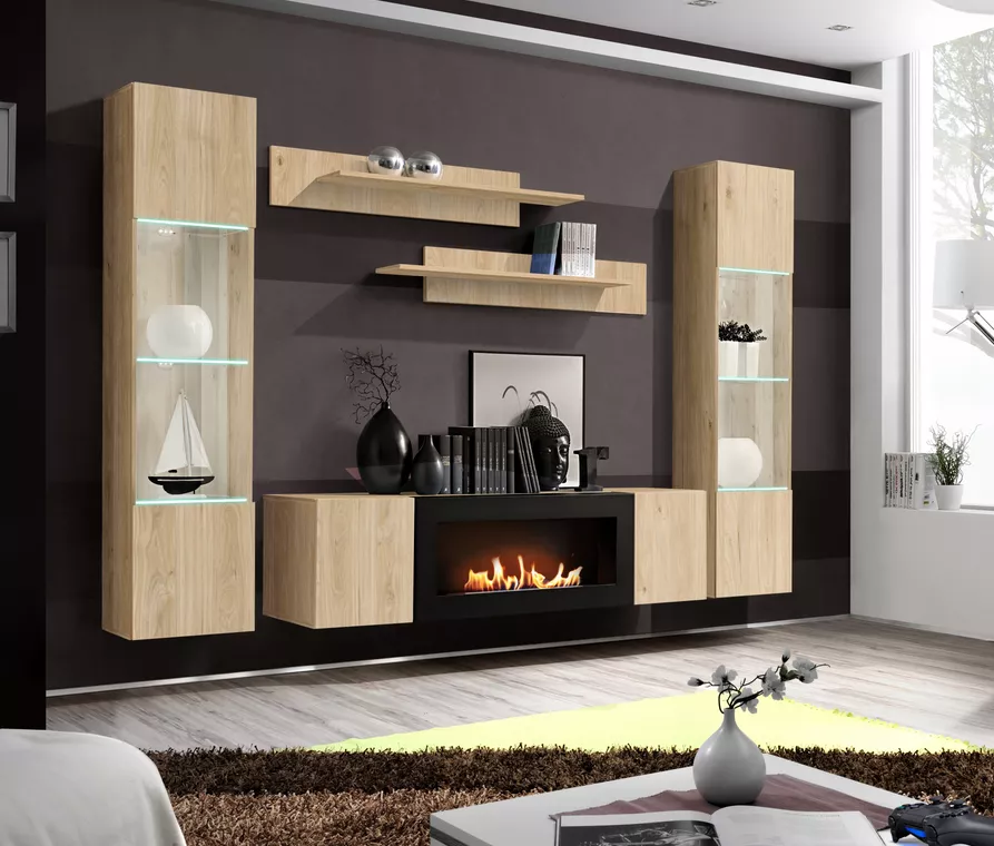 Stěna do obývacího pokoje FREYA s biokrbem - hickory jackson