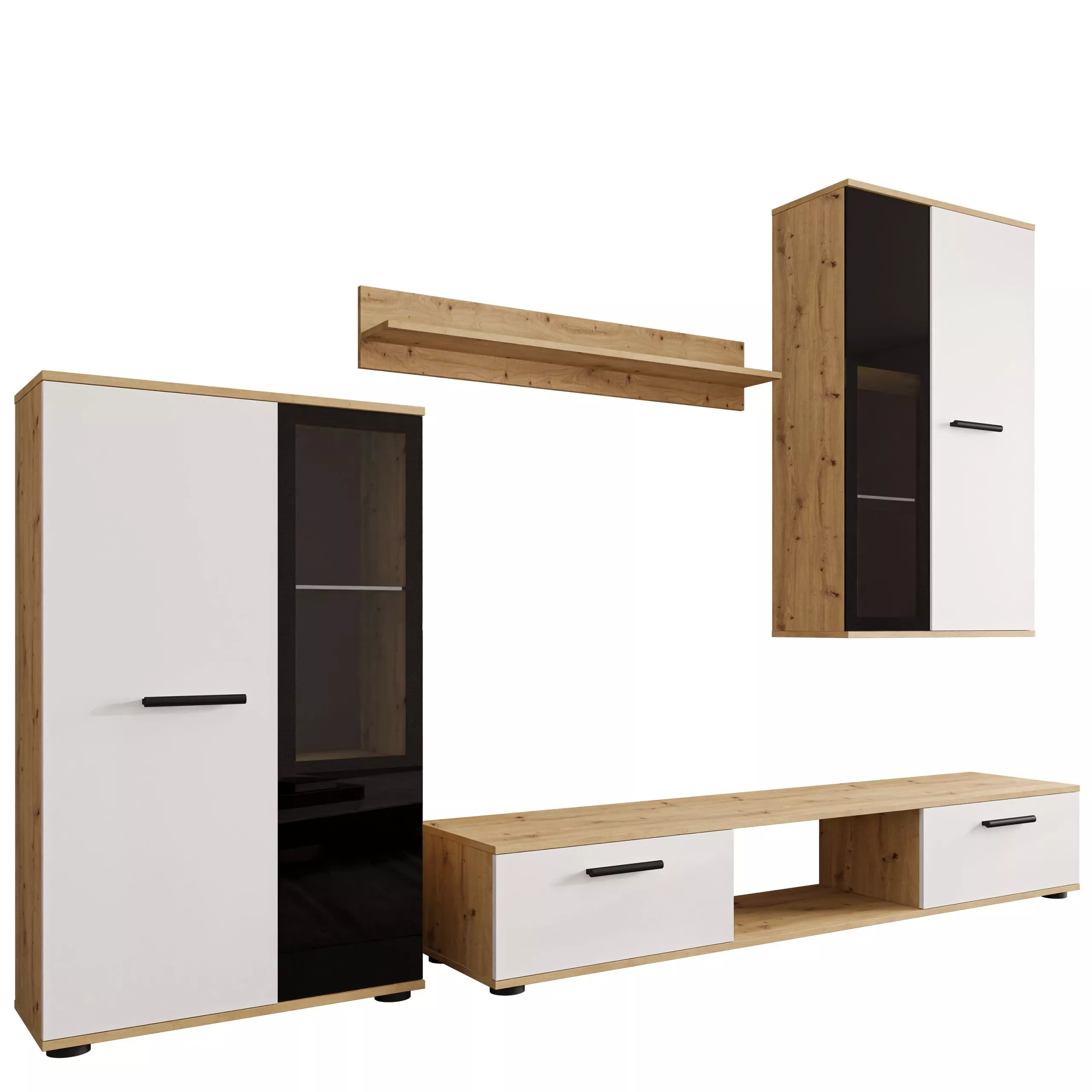 Obývací stěna VENNY bude ideální volbou do vašeho obývacího pokoje. Stěna se skládá z televizního stolku, vitríny, závěsné vitríny a poličky. Disponuje dostatkem úložného prostoru pro vystavení a uložení vašich oblíbených dekorací, suvenýrů nebo dokumentů.