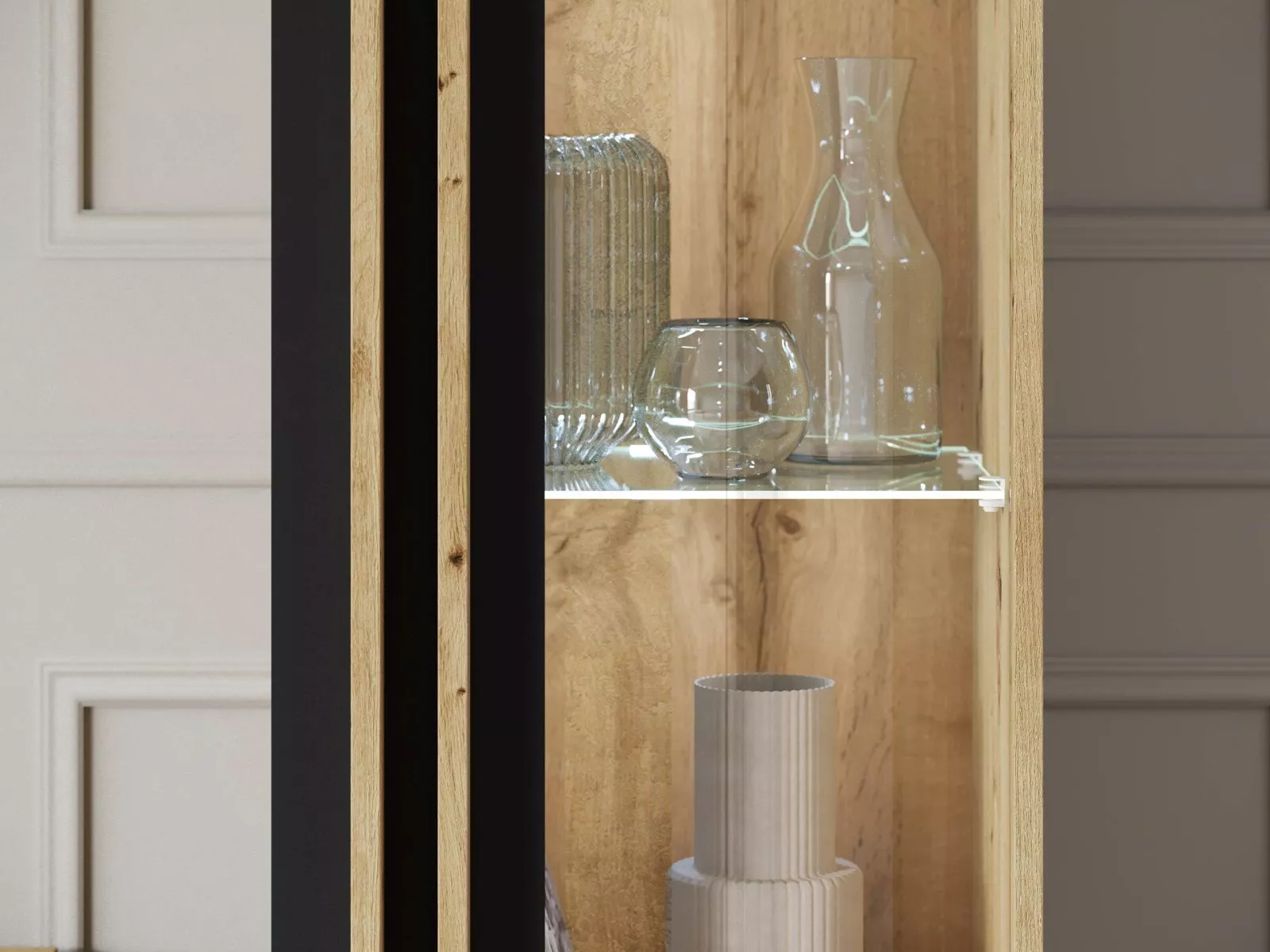 - dvířka vitríny: tvrzené sklo o tloušťce 4 mm