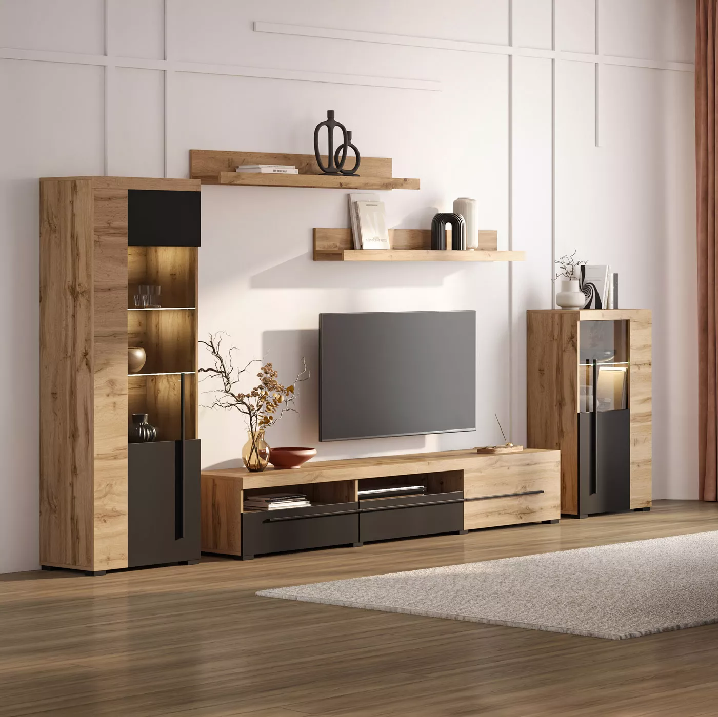 Nábytek do obýváku DEIDRE - dub wotan / černý