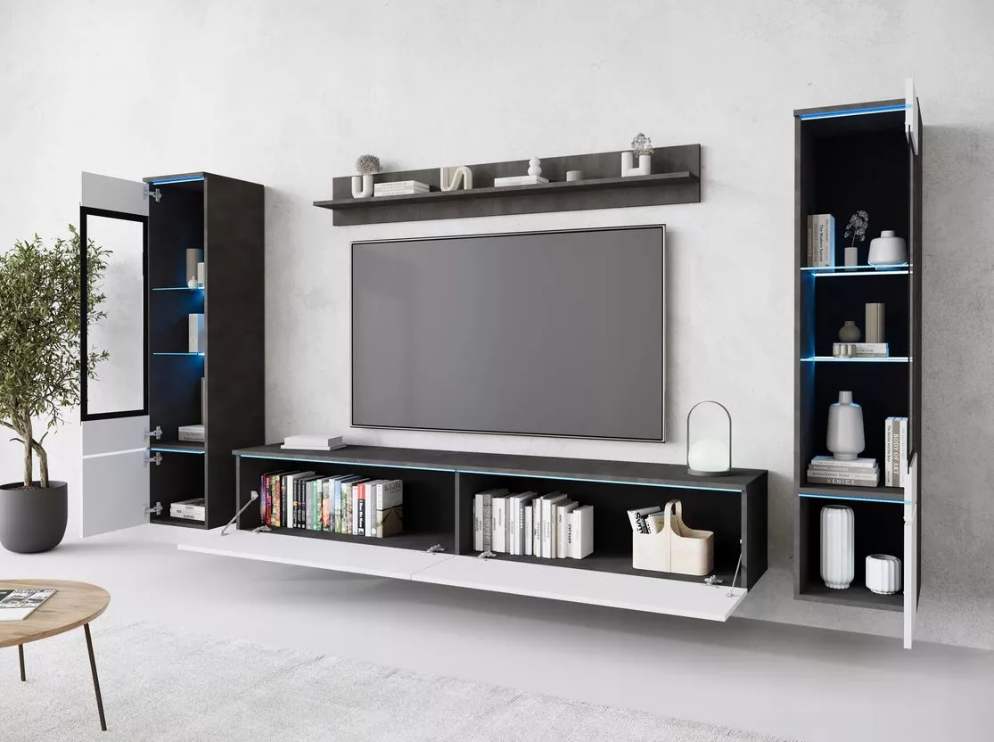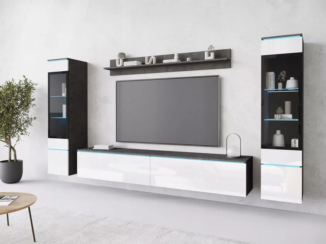 Obývací stěnu dodáváme bez vyobrazeného LED osvětlení.