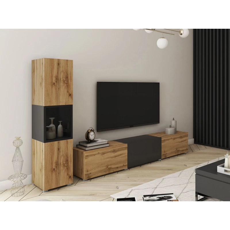Obývací stěna HEXIO - dub wotan / dub wotan / černá