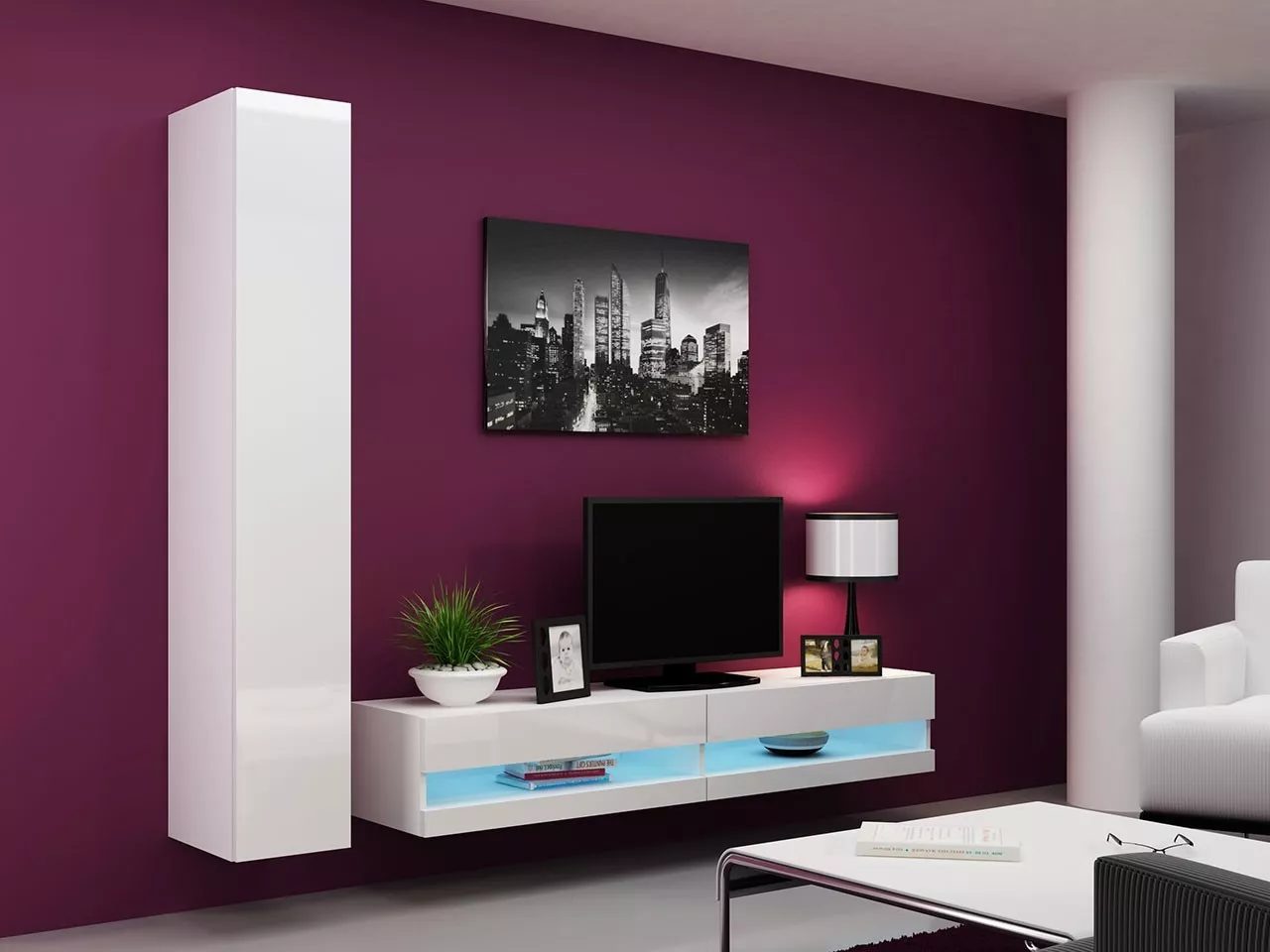Stěna do obývacího pokoje s LED bílým osvětlením ASHTON N9 - bílá / lesklá bílá