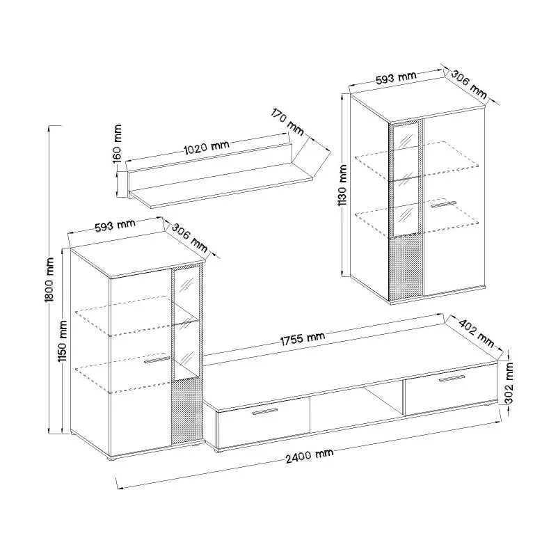 Moderní nábytek do obýváku SANA vyniká jednoduchým designem a kvalitou použitých materiálů. LED osvětlení v modré barvě navodí příjemnou večerní atmosféru.