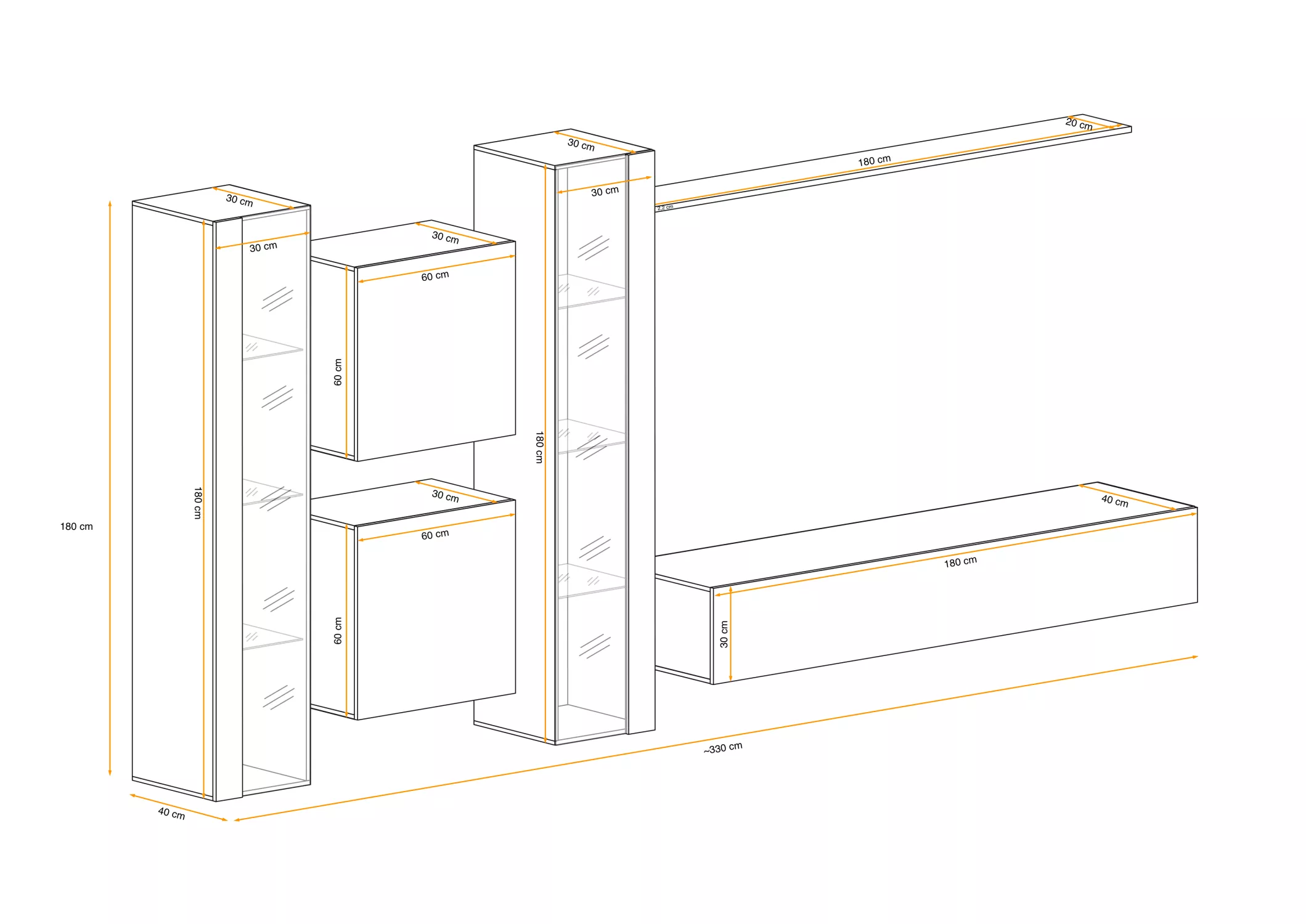 Rionata je skvělou nabídkou nábytku do obývacího pokoje. Díky jednoduchým tvarům, módním barvám a absenci úchytek tento kus nábytku jistě osloví milovníky moderního stylu. Všechny skříňky jsou závěsné, což značně usnadňuje úklid. Otevírání dvířek systémem push-click umožňuje pohodlné používání nábytku.