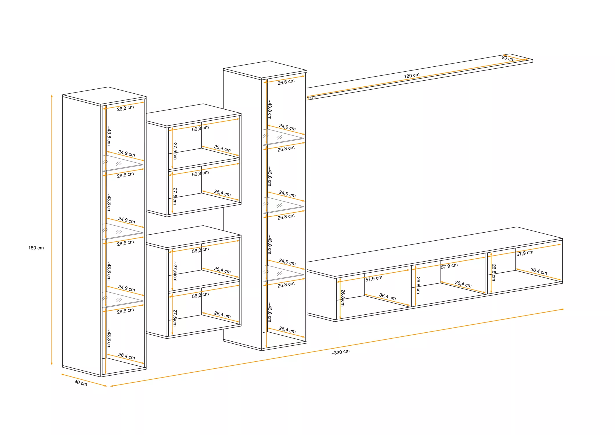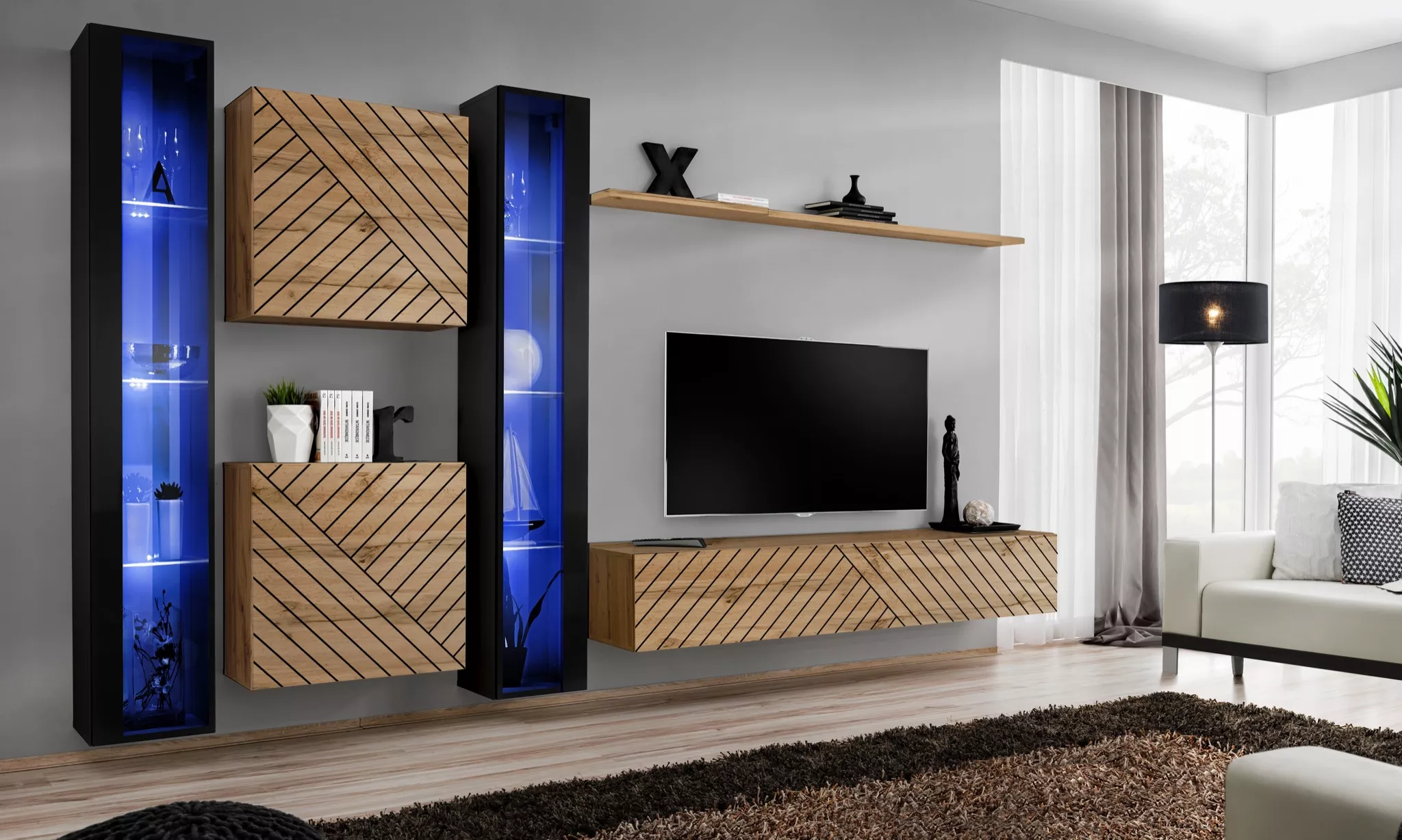 Obývací stěna RIONATA 16 - černá / dub wotan