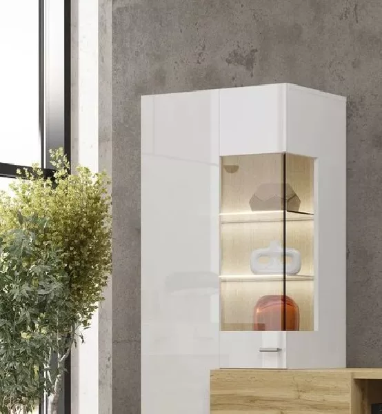 Obývací stěna NIKOL se hodí do všech moderních obývacích pokojů. Skládá se z TV stolku a 2 vitrín.