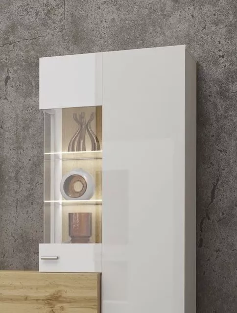 Obývací stěna NIKOL - bílý / bílý lesk / wotan