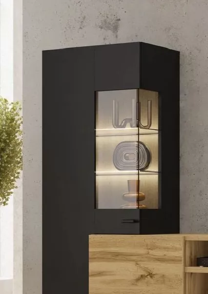 Obývací stěna NIKOL se hodí do všech moderních obývacích pokojů. Skládá se z TV stolku a 2 vitrín.