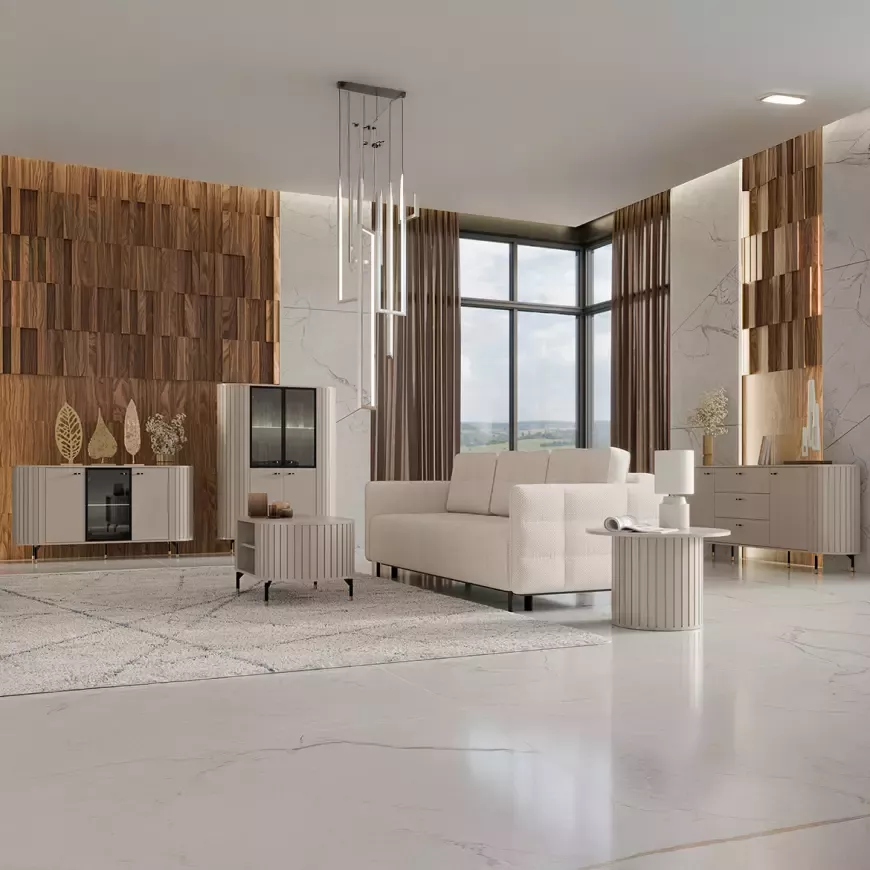 Kulatý odkládací stolek APEX se svým zpracováním hodí do všech moderních obývacích pokojů. Stolek zaujme především svou podstavou s lamelami.
